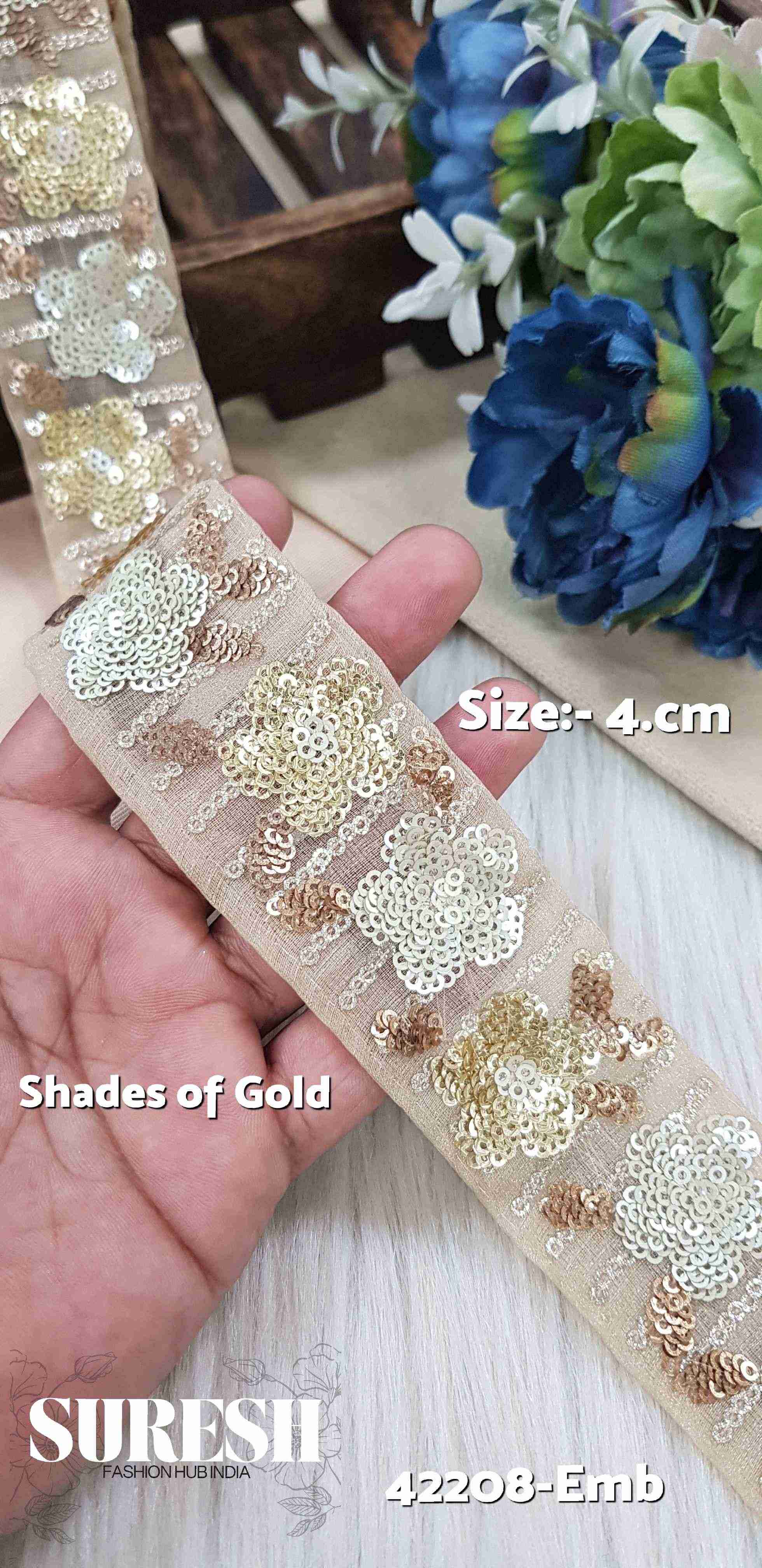 Shades of Gold Floral Sequin Organza Lace