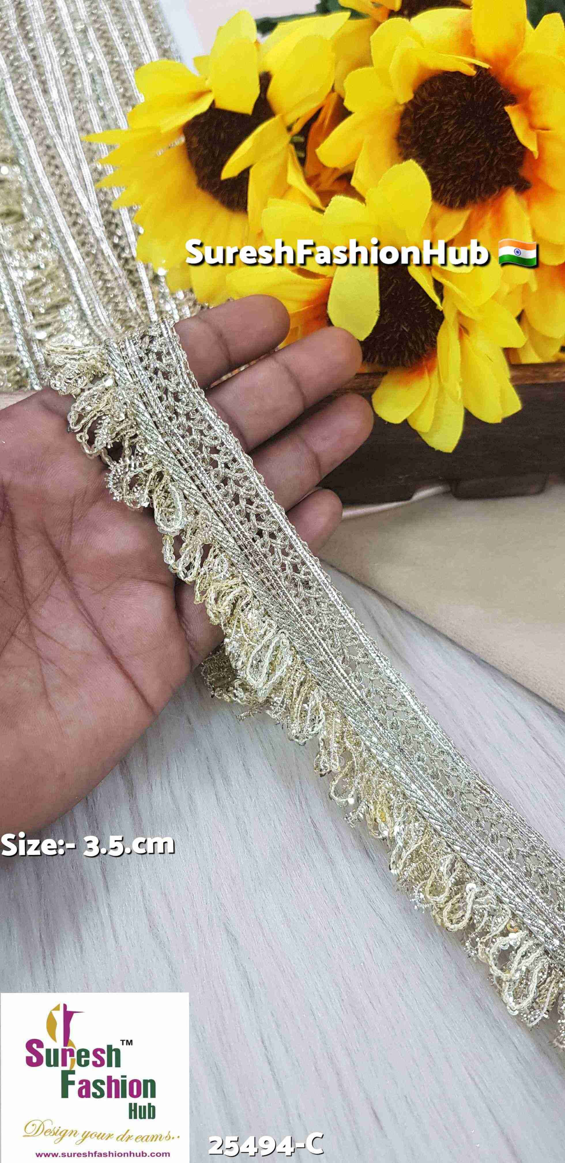 Elevate your creations with the exquisite 25494-C Sequence Badla Jhalar collection from *Suresh Fashion Hub India*, designed to add a luxurious and elegant touch to your designs. Crafted with precision and artistry, this lace is a perfect blend of modern craftsmanship and traditional elegance.