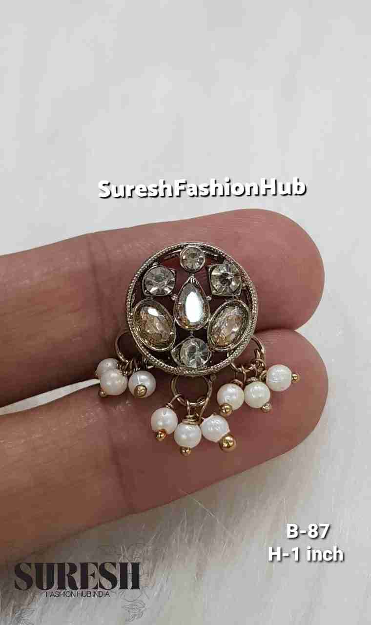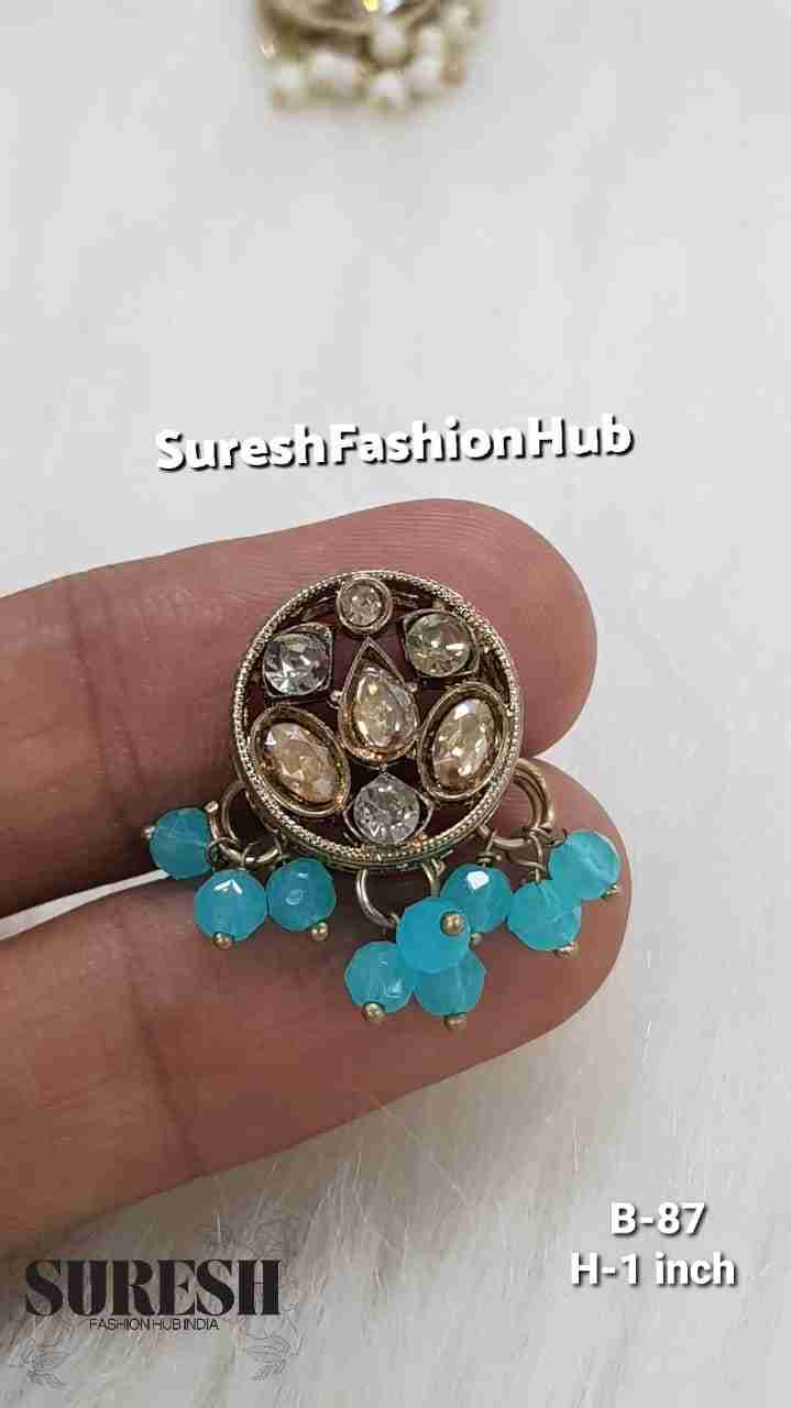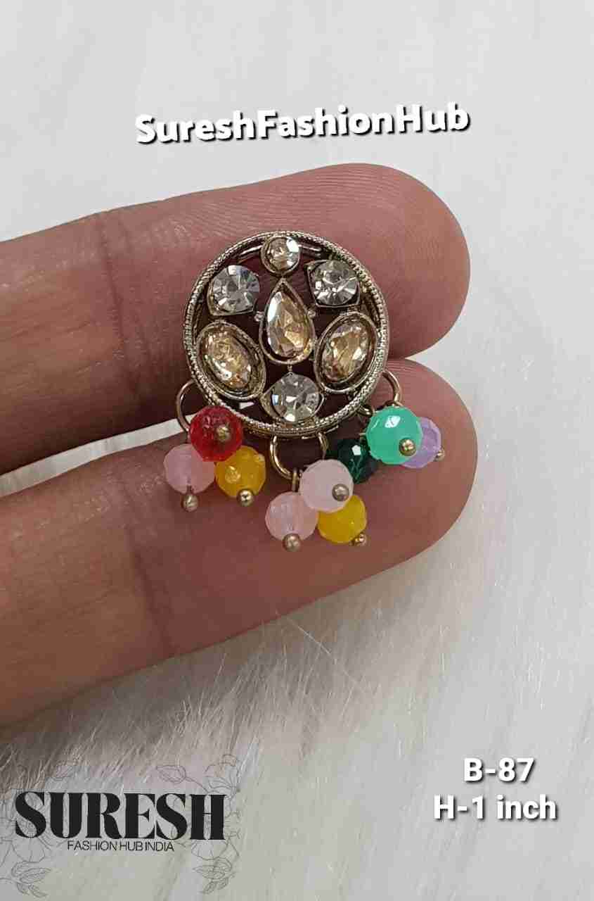 Multi Color Antique Kundan Crystal Drop Button – B-87