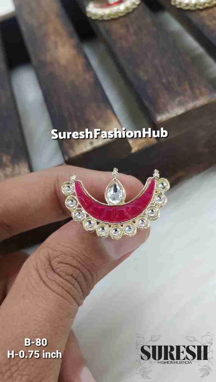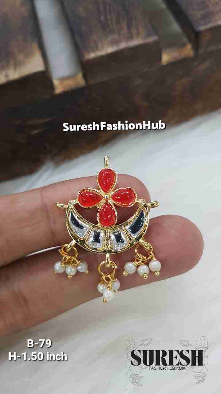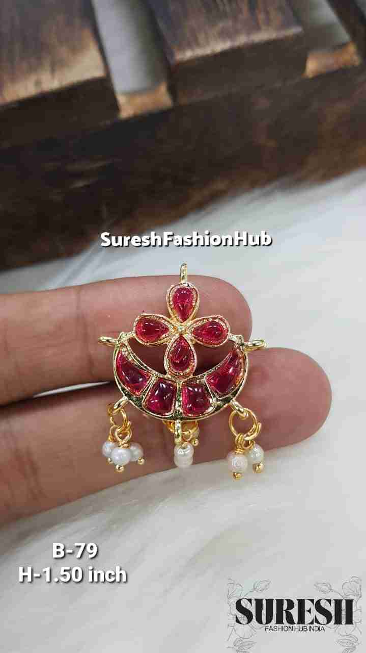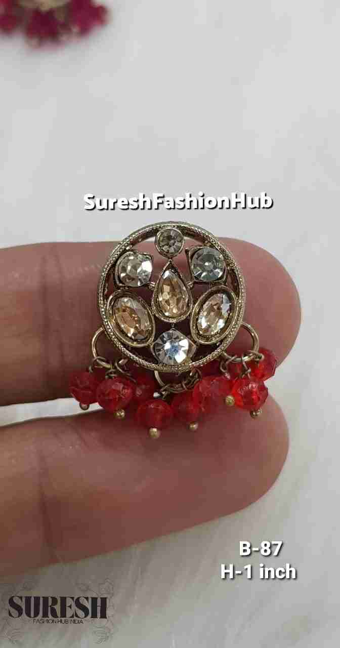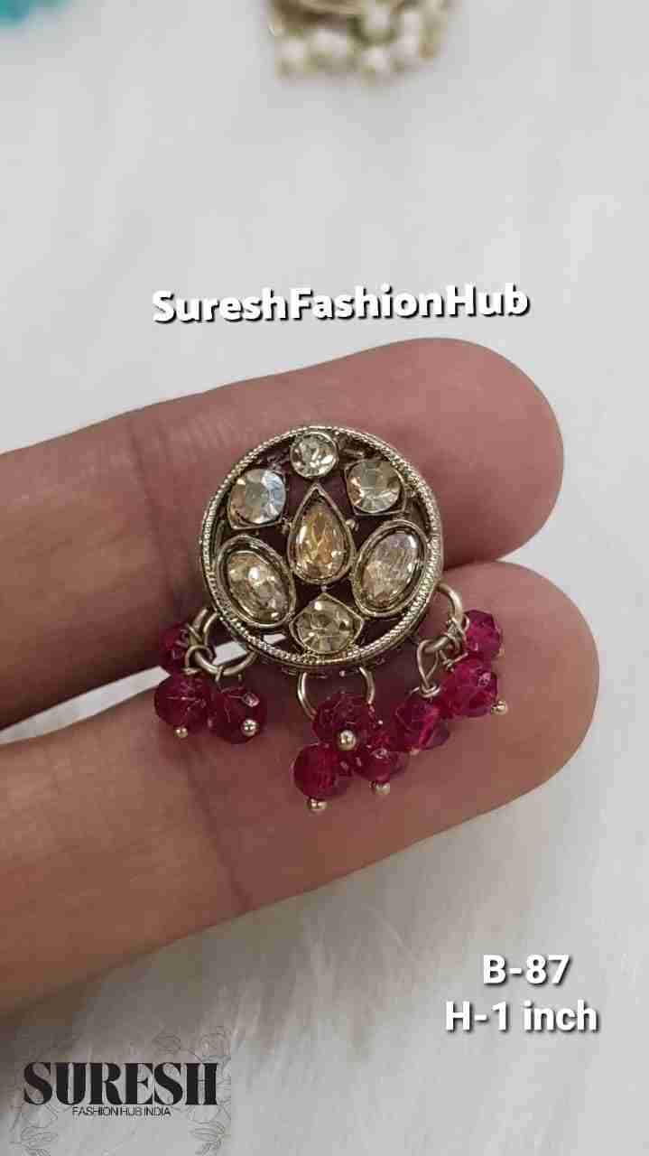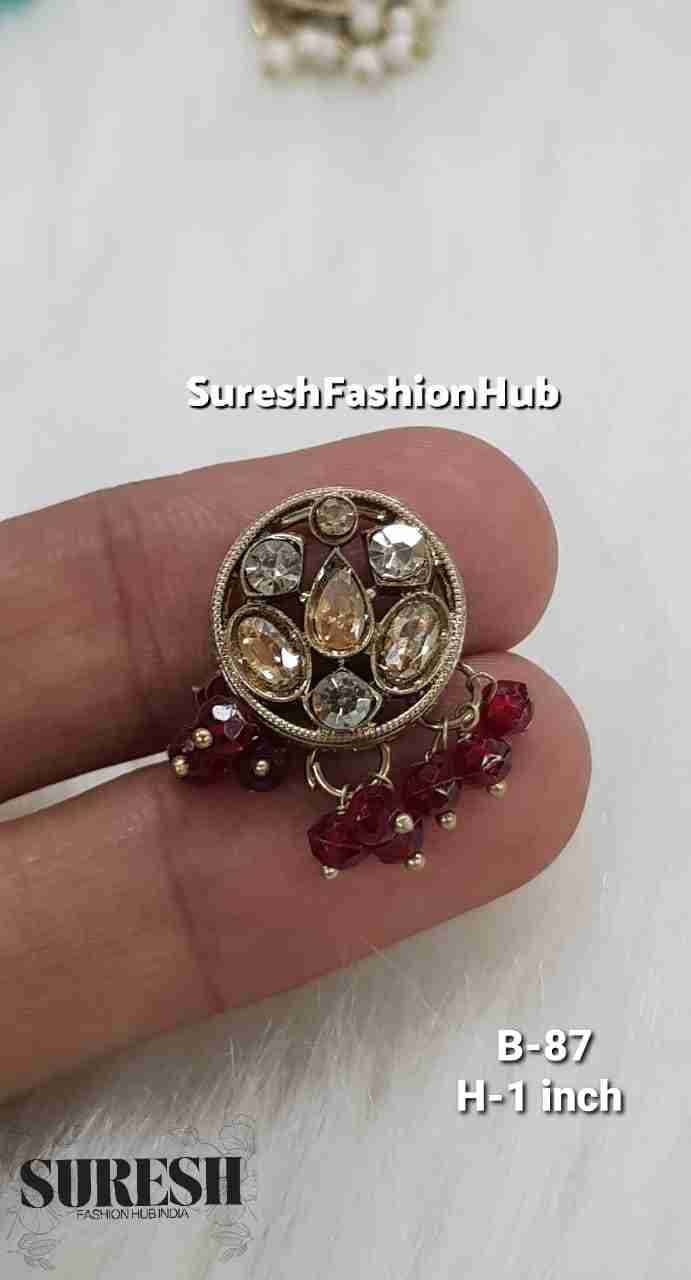 Maroon Antique Kundan Crystal Drop Button – B-87