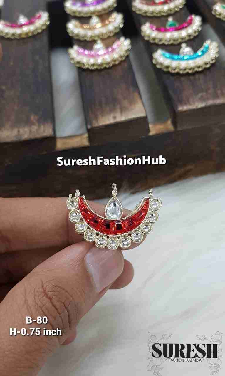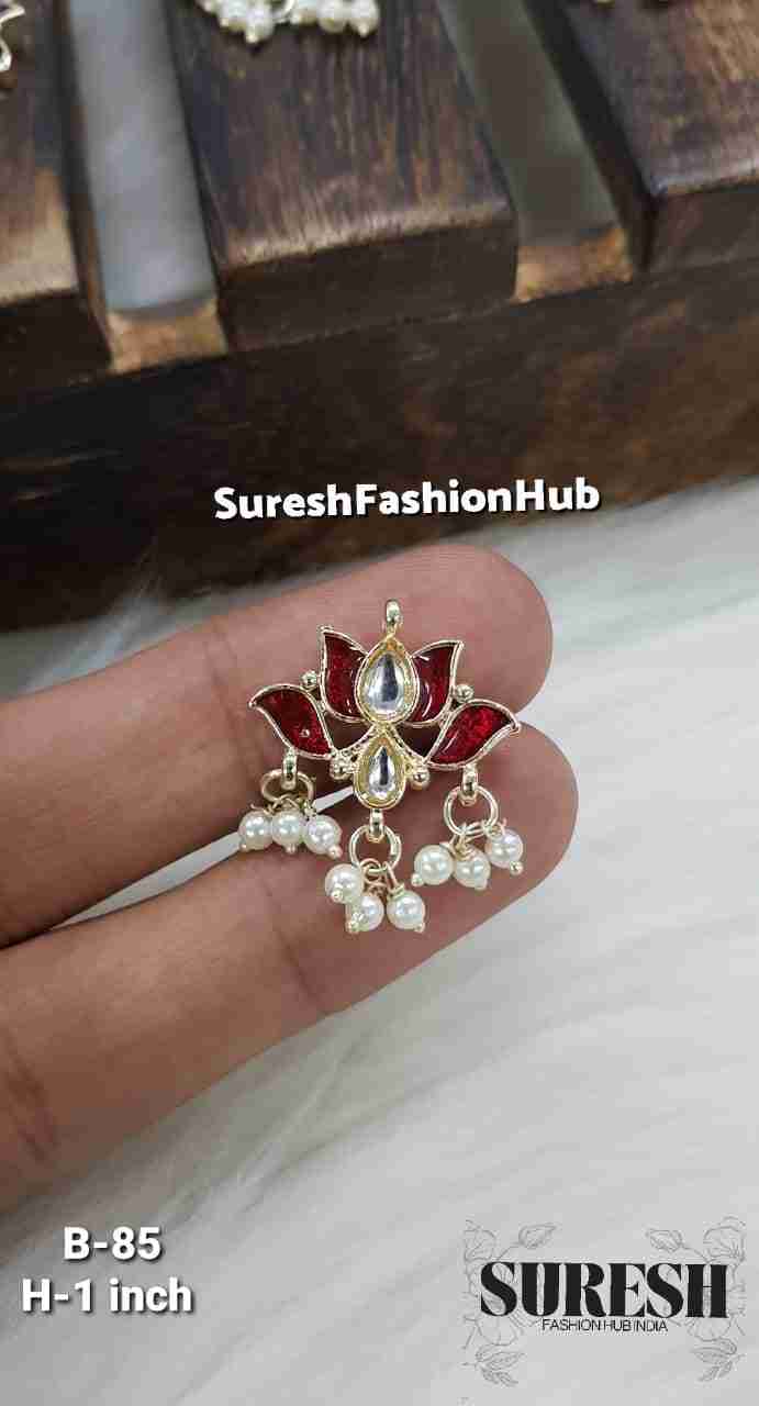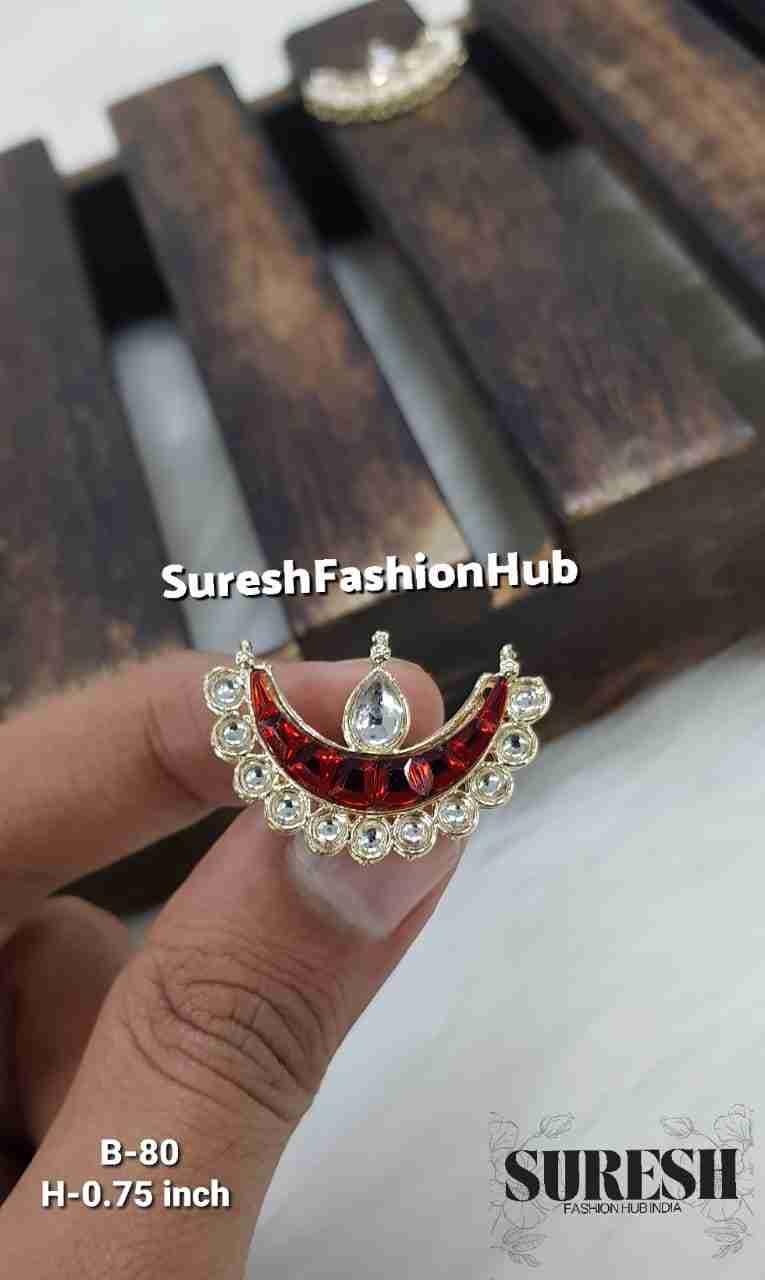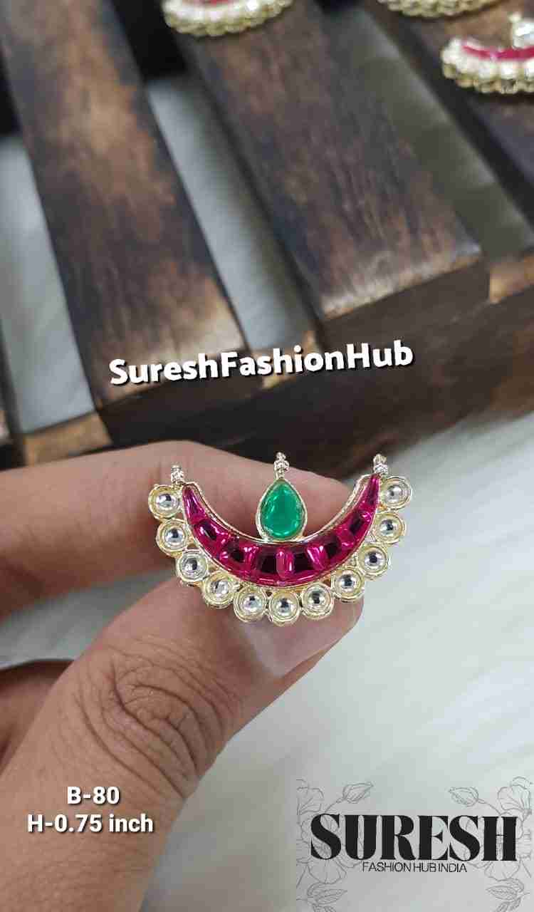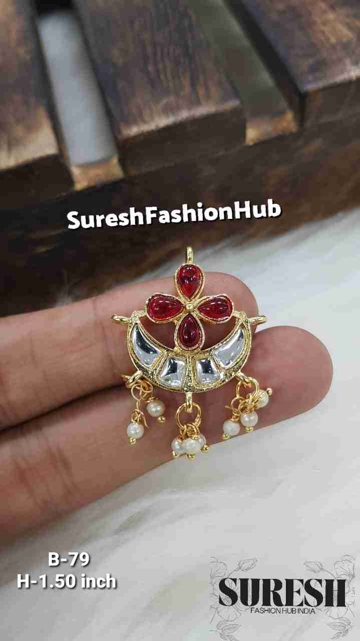 Maroon Antique Kundan Crystal Drop Button – B-87
