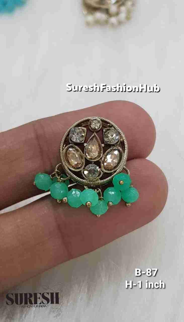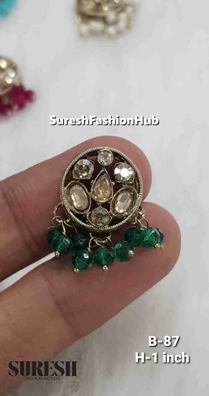 Bottle Green Antique Kundan Crystal Drop Button – B-87