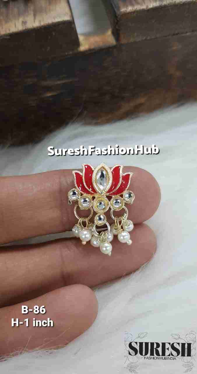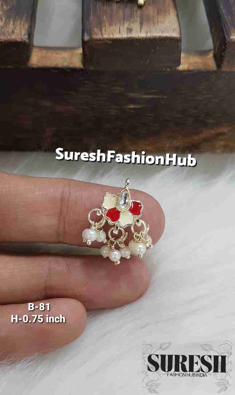 Red Lotus Meenakari Pearl Drop Button – B-86