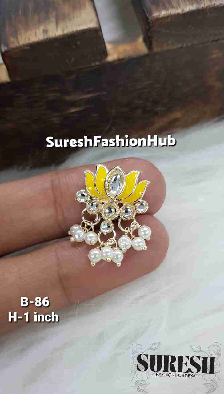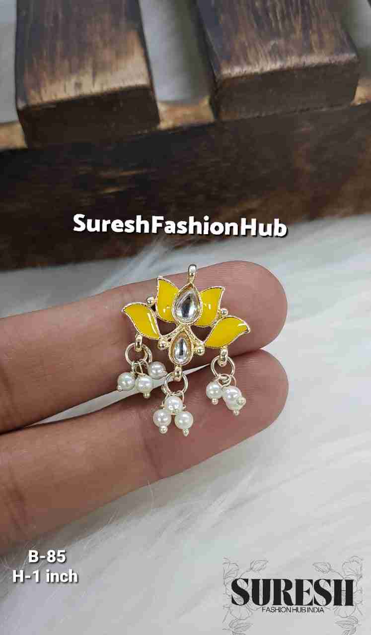 Yellow Lotus Meenakari Pearl Drop Button – B-86