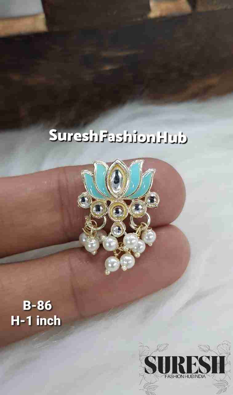 Aqua Lotus Meenakari Pearl Drop Button – B-86