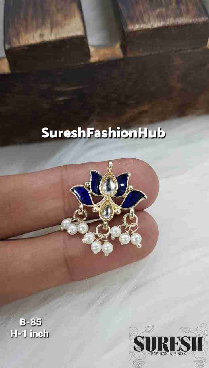 Navy Lotus Meenakari Pearl Drop Button – B-85