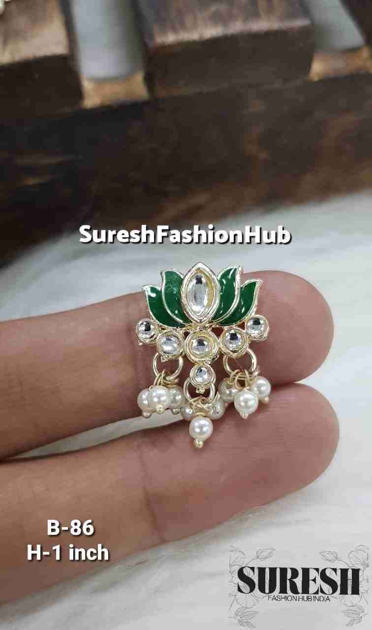 Green Lotus Meenakari Pearl Drop Button – B-86
