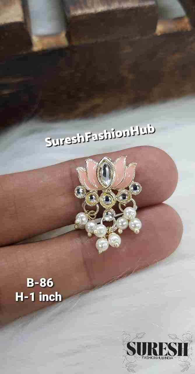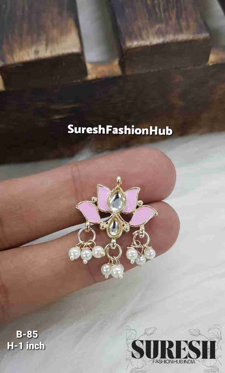 Baby Pink Lotus Meenakari Pearl Drop Button – B-85