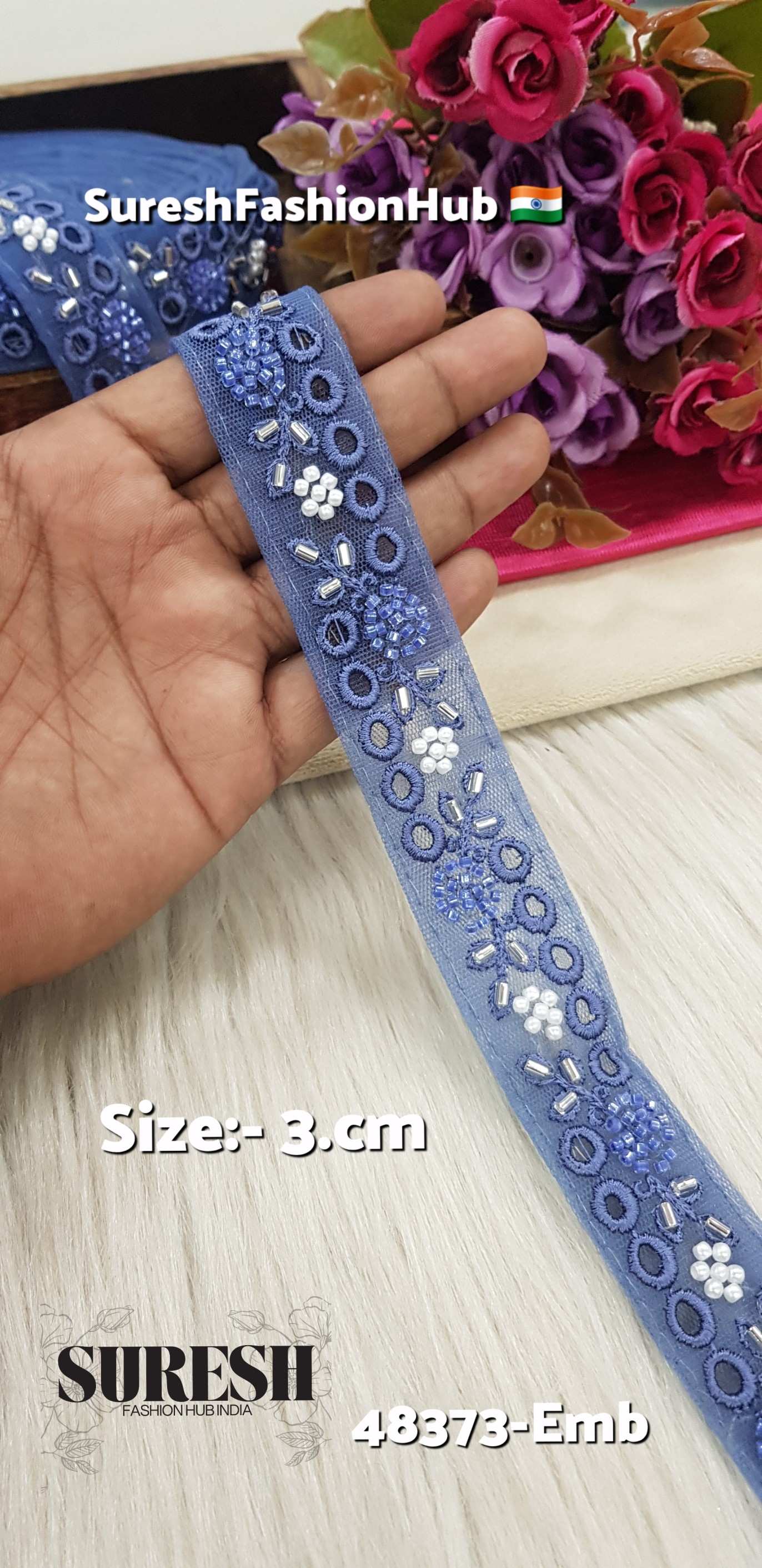 Blue Tone-to-Tone Machine Hand Embroidery Lace – 48367-EMB