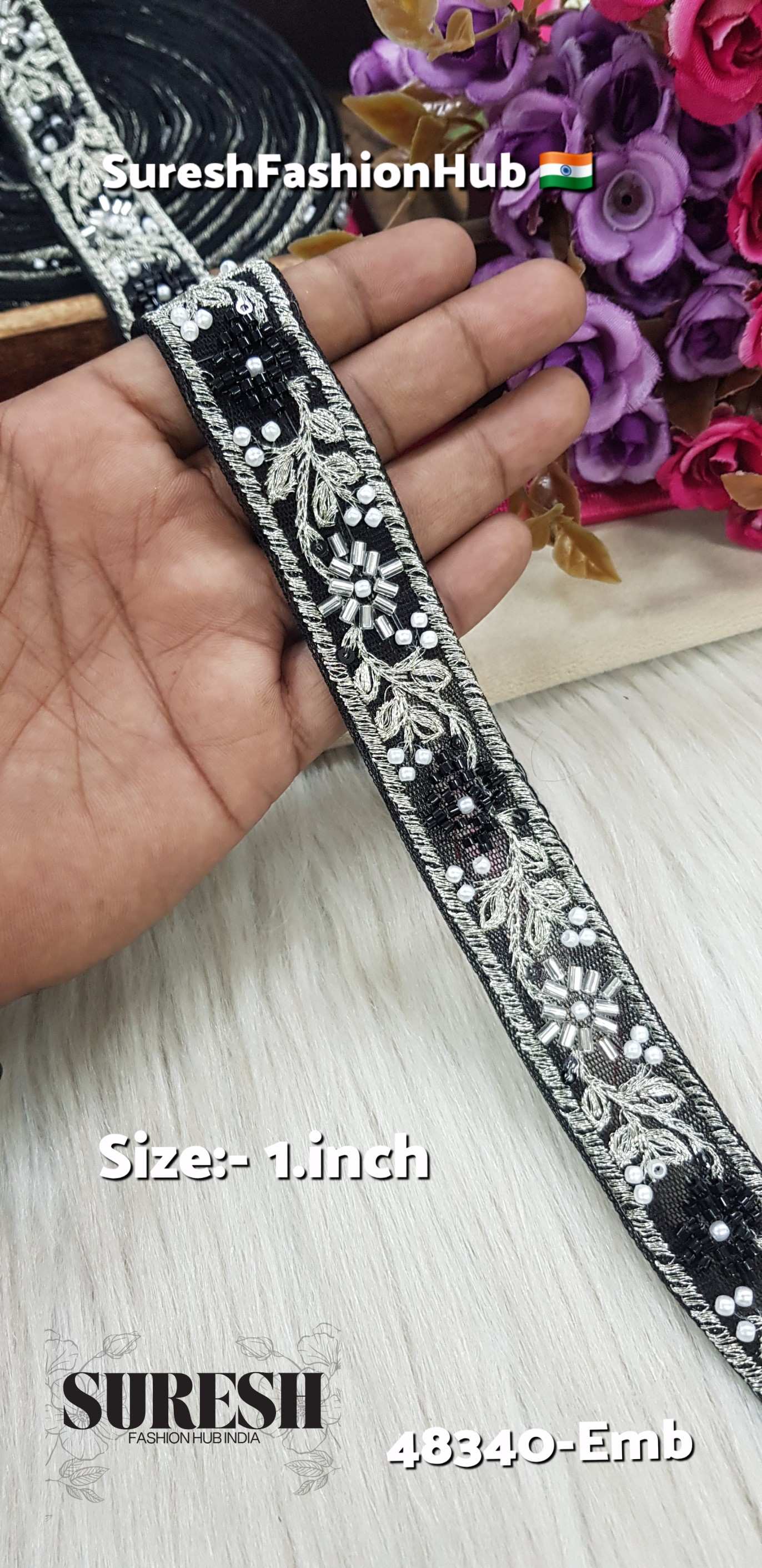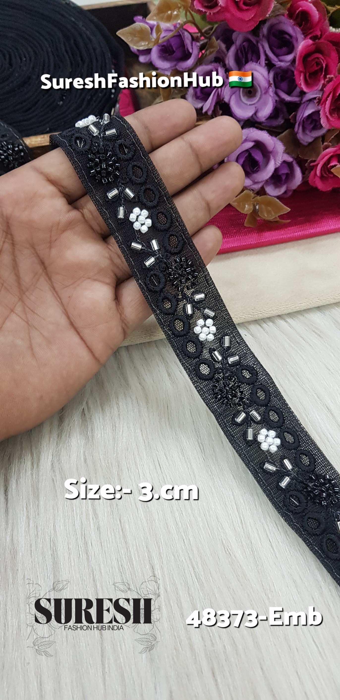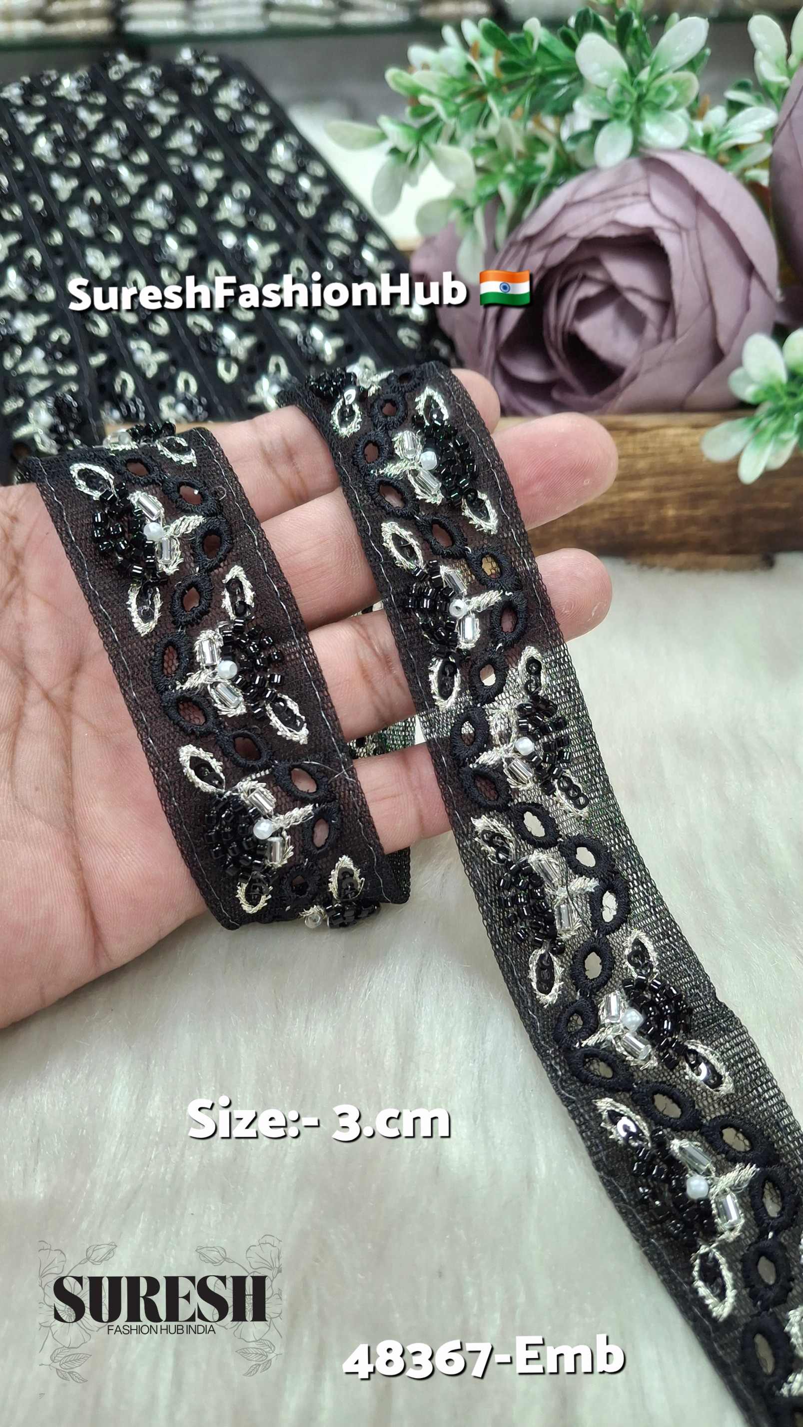 Black Sabyasachi Inspired Embroidery Lace – 48743-Emb
