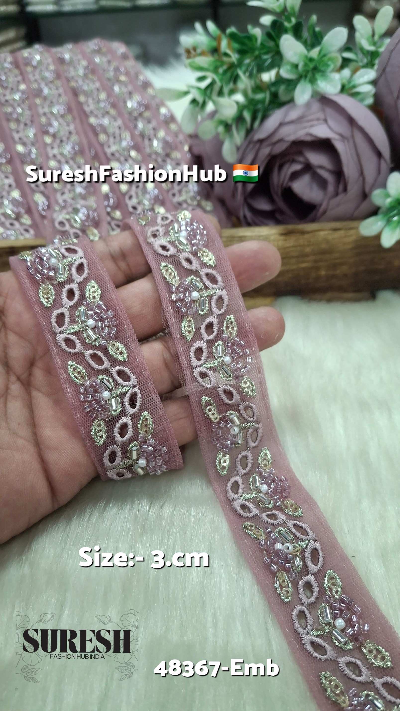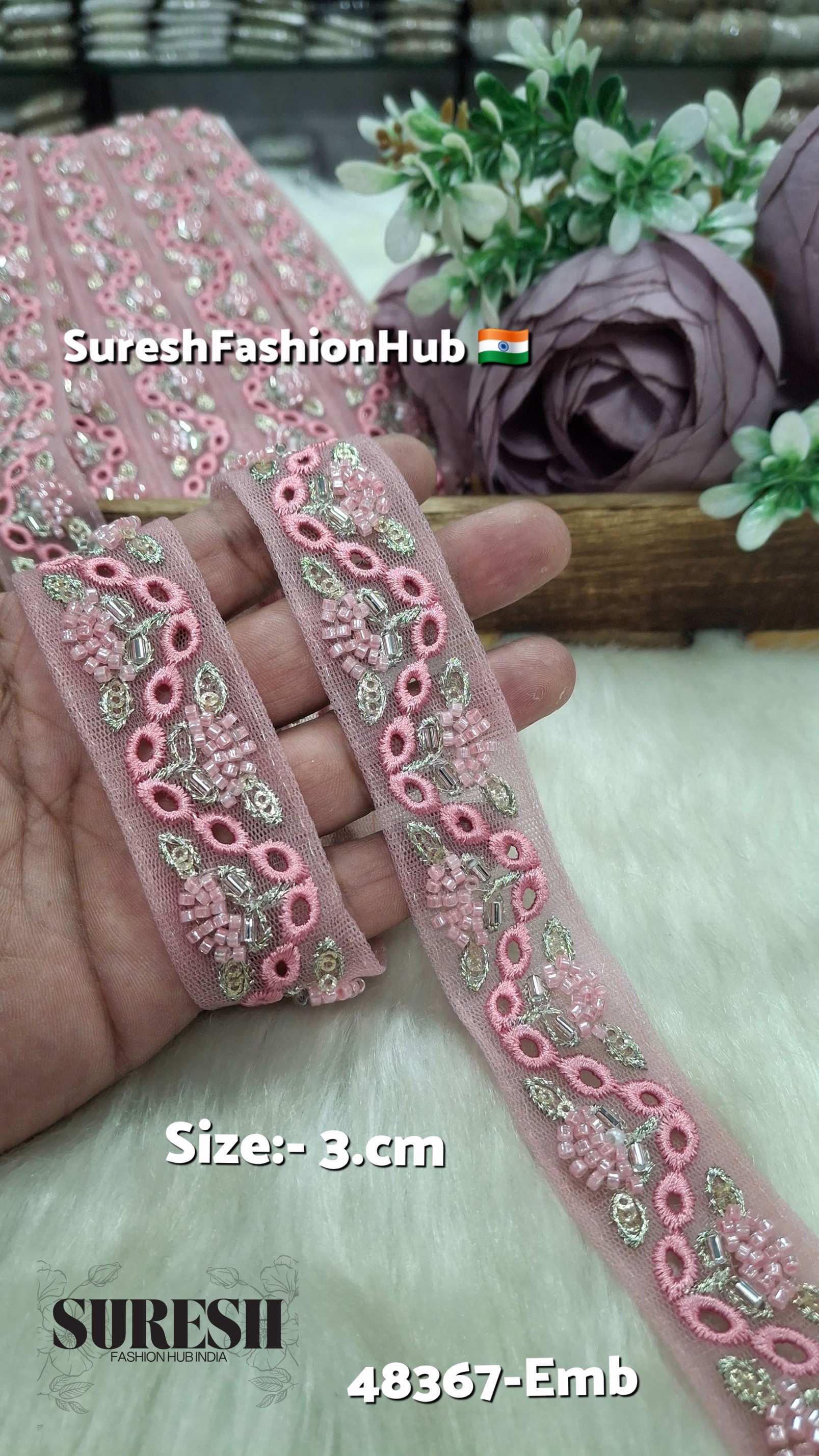 Pink Tone-to-Tone Machine Hand Embroidery Lace – 48340-EMB