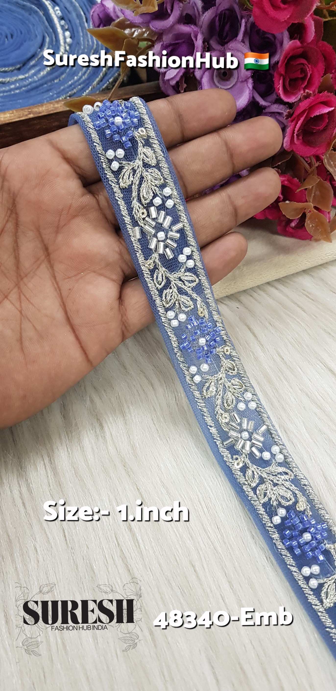 Blue Tone-to-Tone Machine Hand Embroidery Lace – 48340-EMB