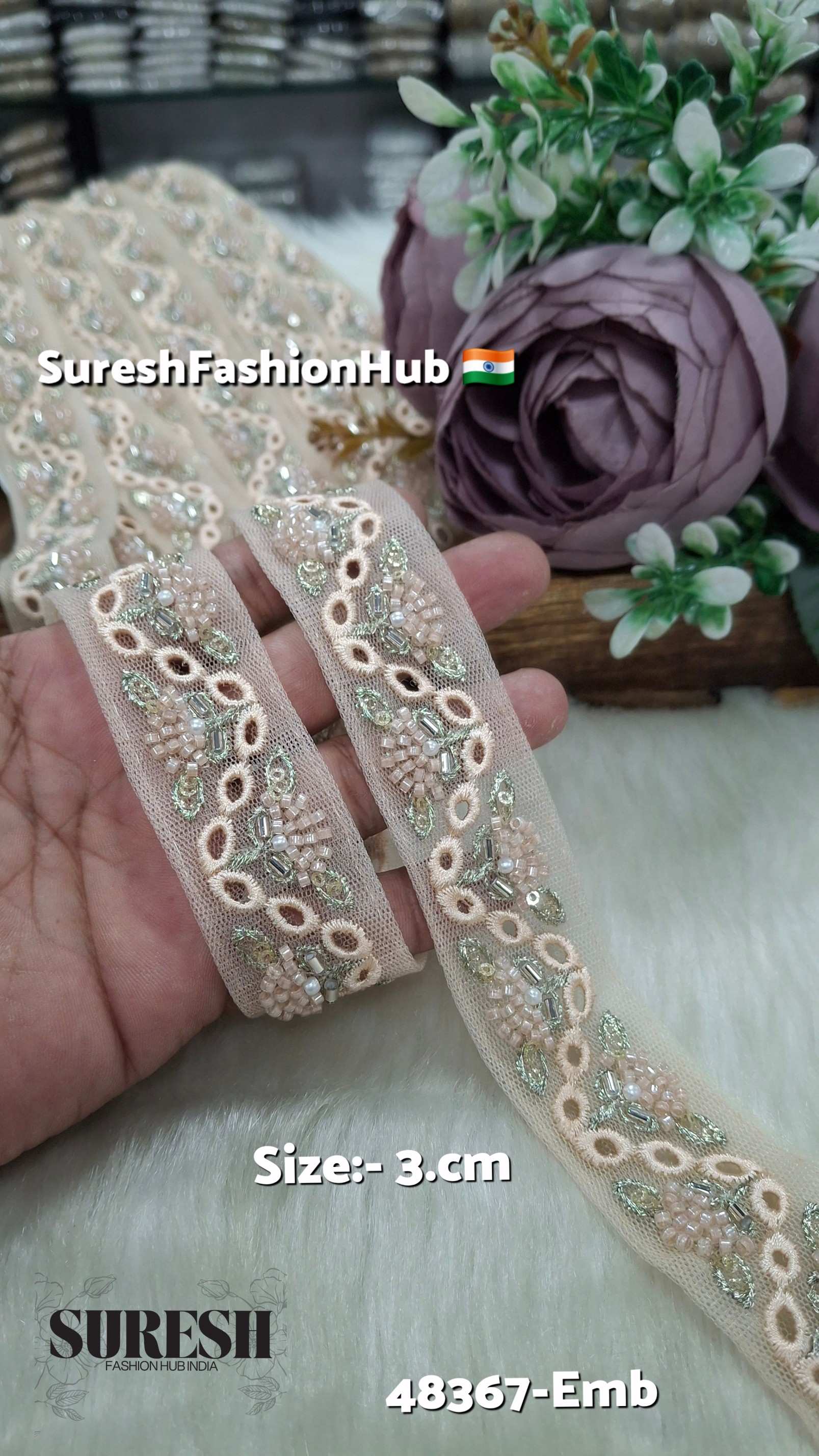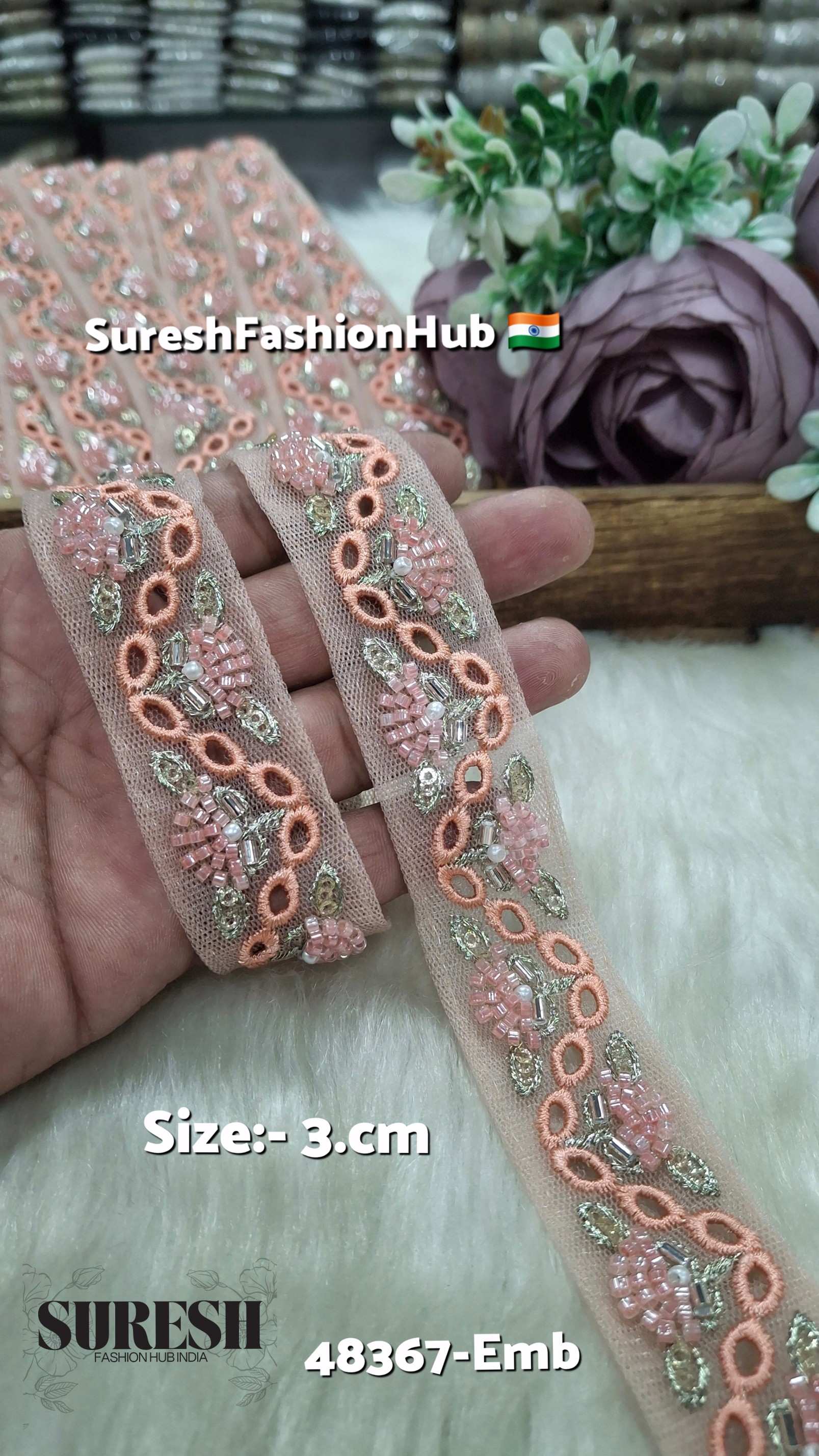 Peach Sabyasachi Inspired Embroidery Lace – 48745-Emb