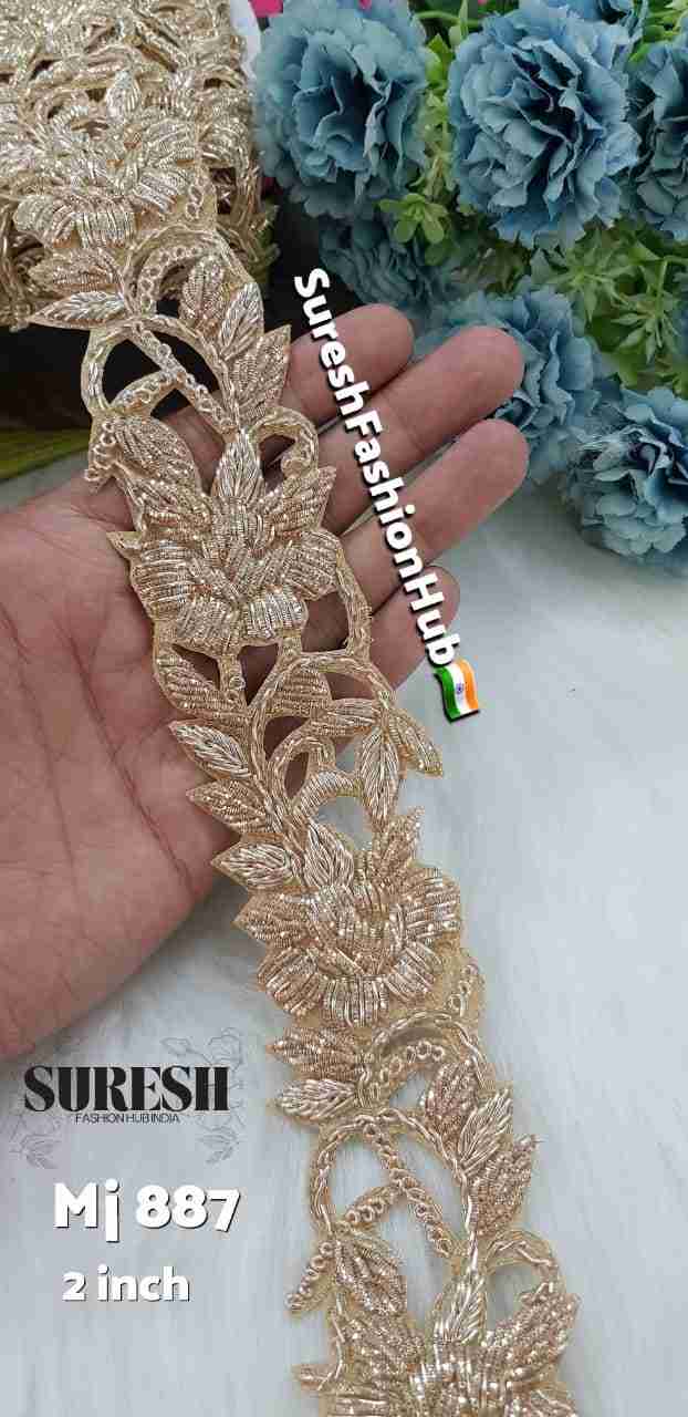 Royal Bloom Gold Handmade Designer Zardosi Lace – 2 Inch Mj-890