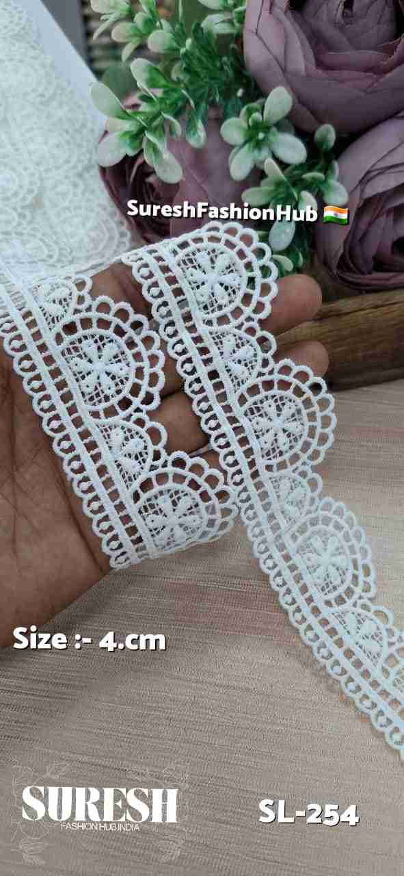 White Floral One Side Imported GPO Lace – Design SL-254 (4cm)