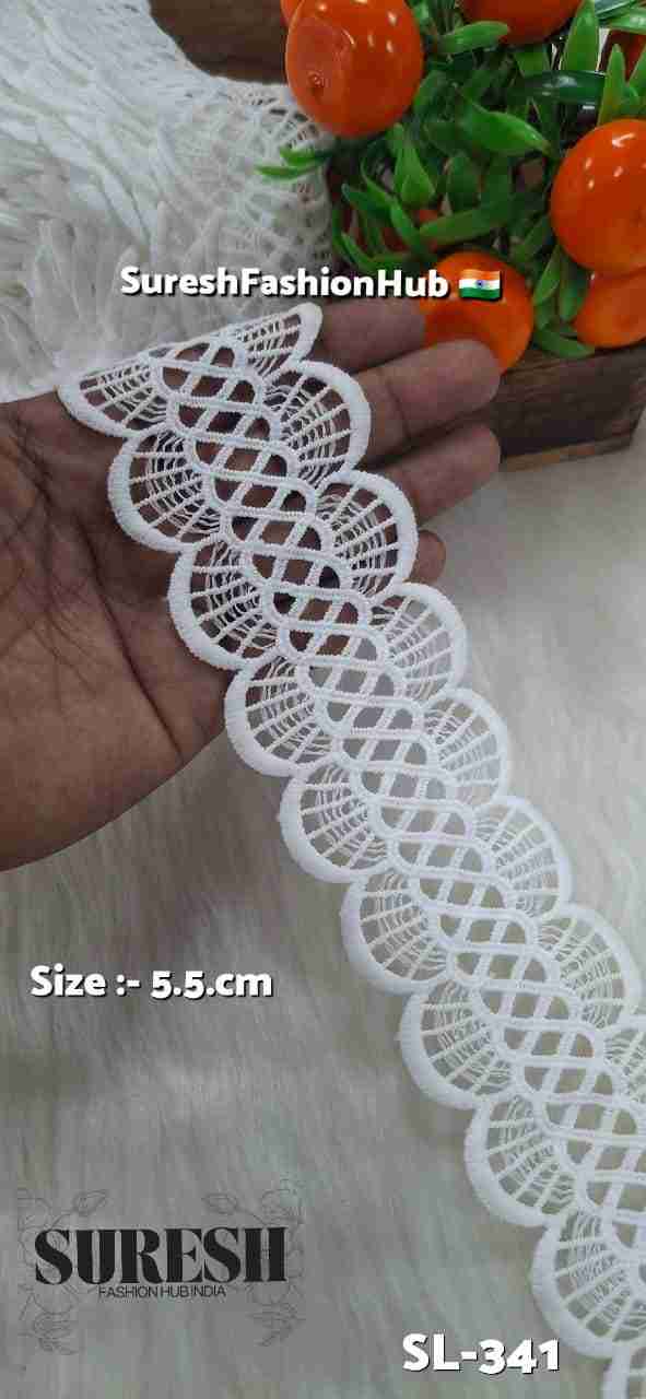 White Floral One Side Imported GPO Lace – Design SL-341 (5.5cm)