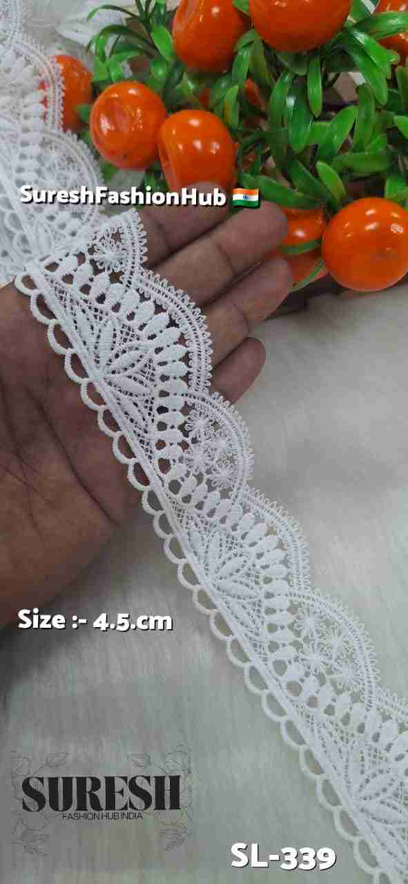 White Floral One Side Imported GPO Lace – Design SL-339 (4.5cm)