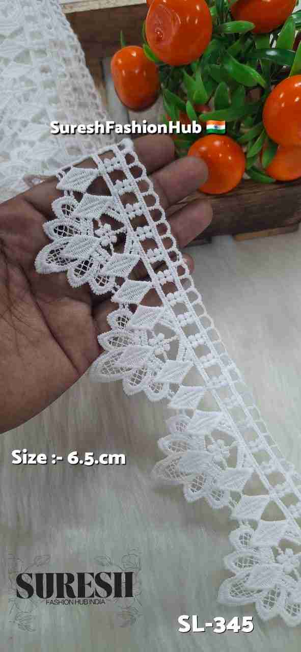 White Floral One Side Imported GPO Lace – Design SL-345 (6.5cm)