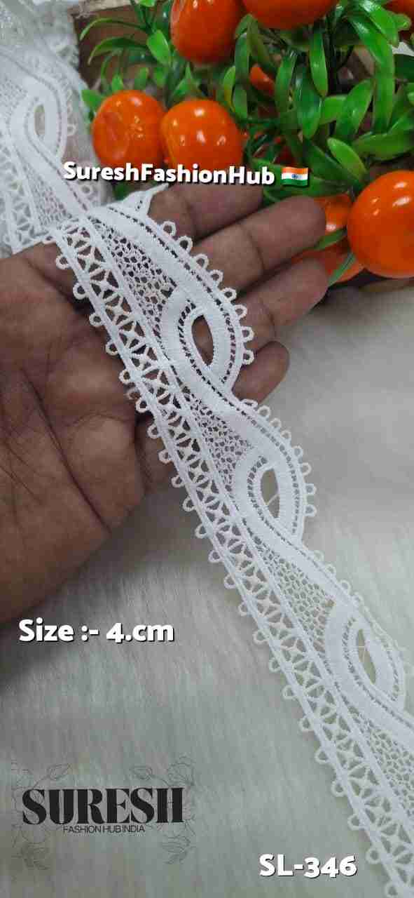 White Floral One Side Imported GPO Lace – Design SL-346 (4cm)