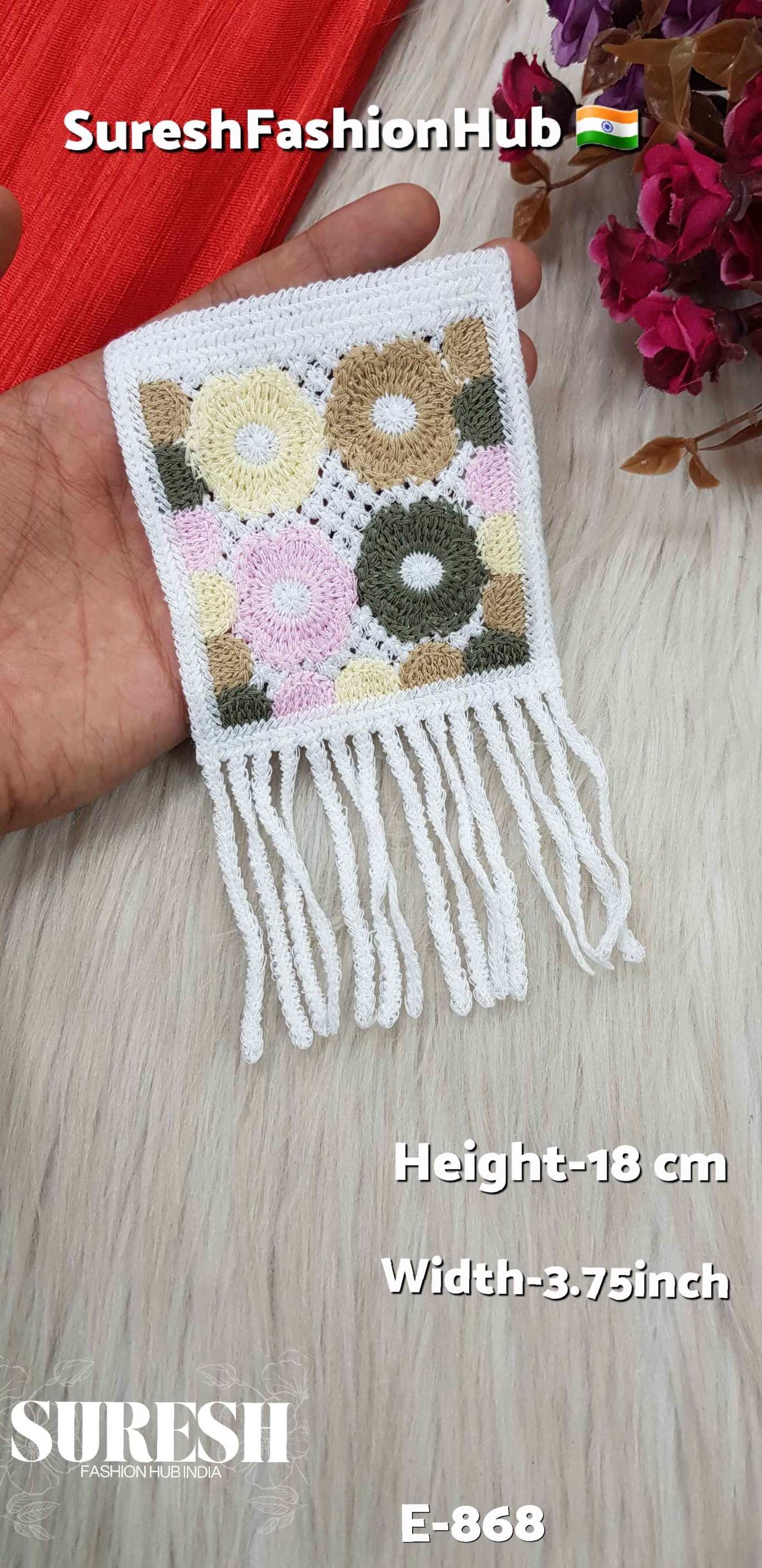 Marvellous Bloom Embroidered Fringe White Color Patch – E-868