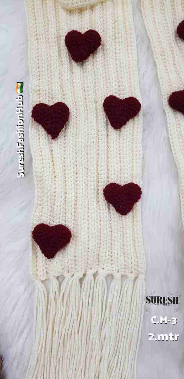 Cream Crochet Red Heart Handmade Muffler – C.M-3