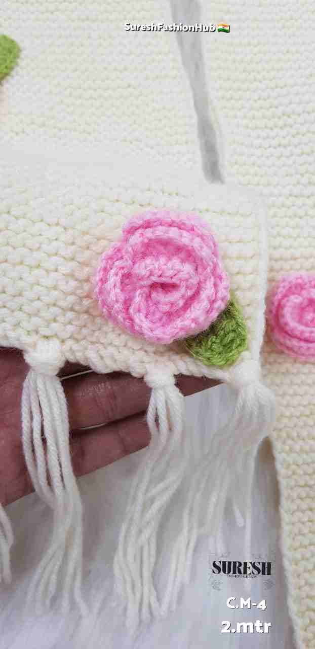Cream Crochet Pink Rose Handmade Muffler – C.M-4