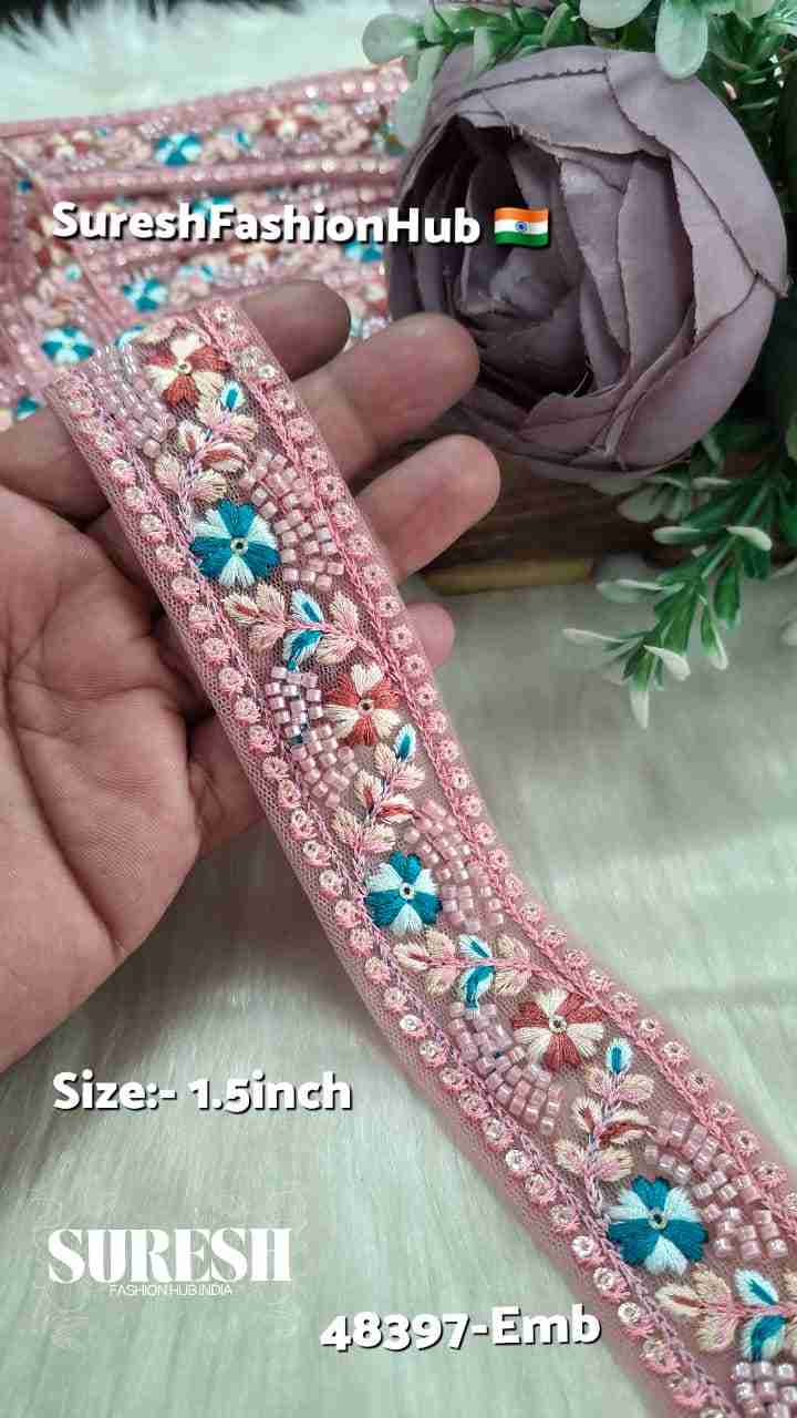 Pink Regal Cutdhana Sequin Net Embroidery Lace – 48397-Emb