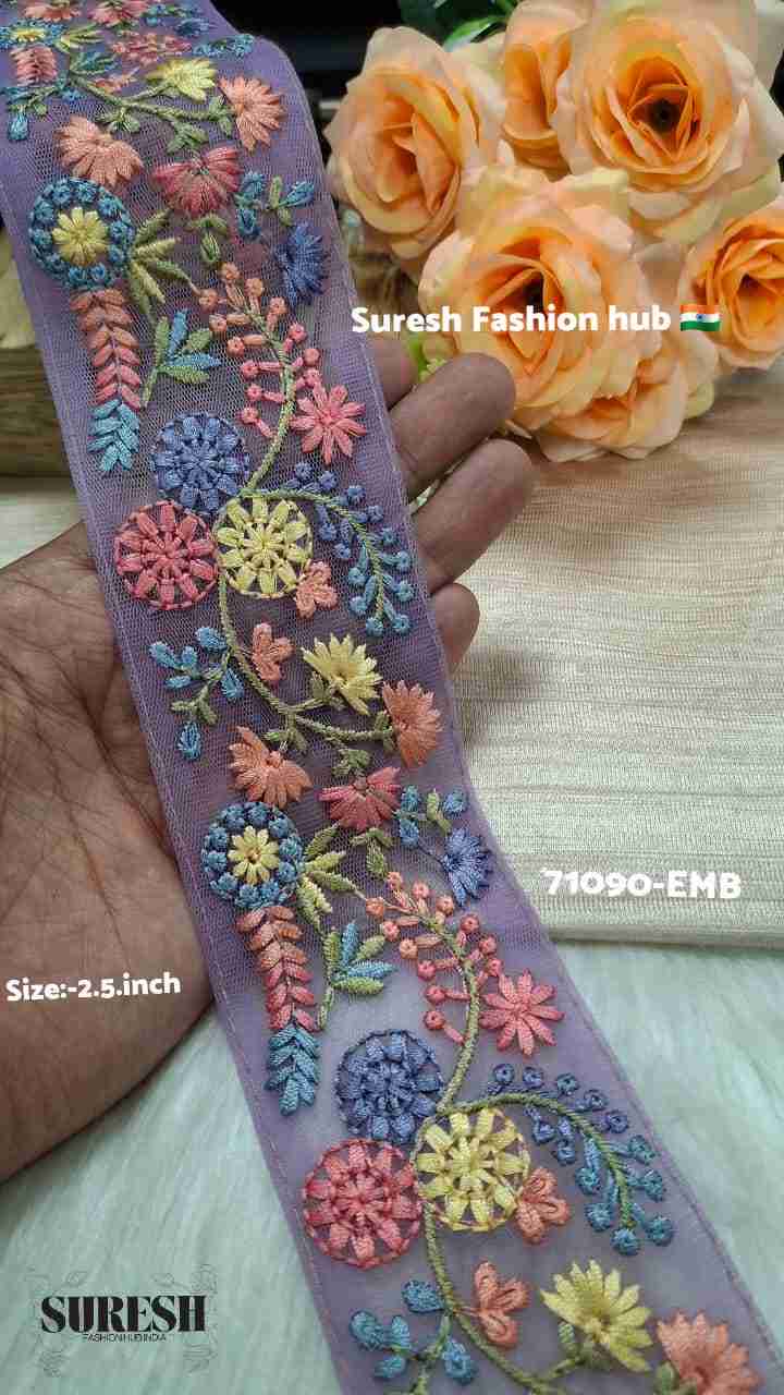 Light Purple Multi Floral Thread Embroidery Net Lace – 71088-Emb