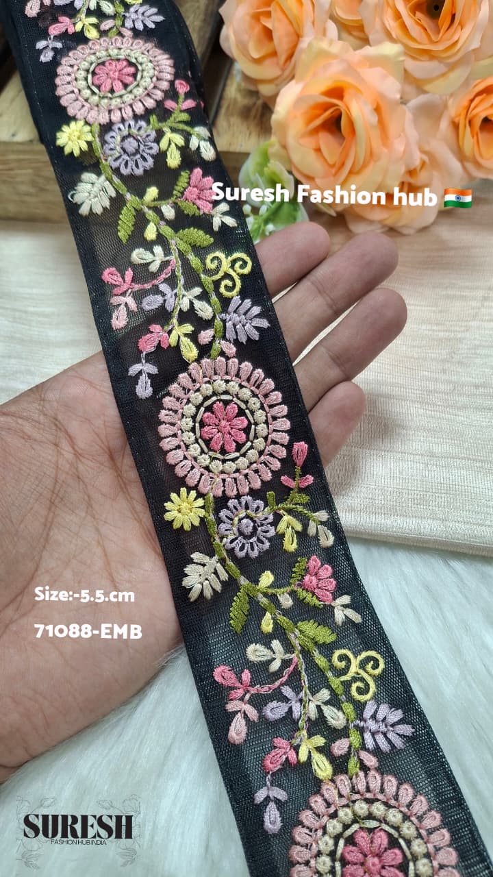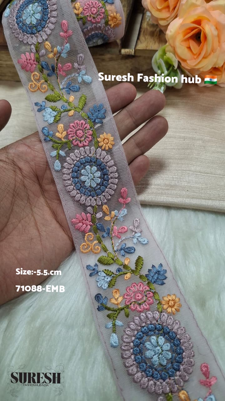 Multi Color Thread Embroidered Ribbons