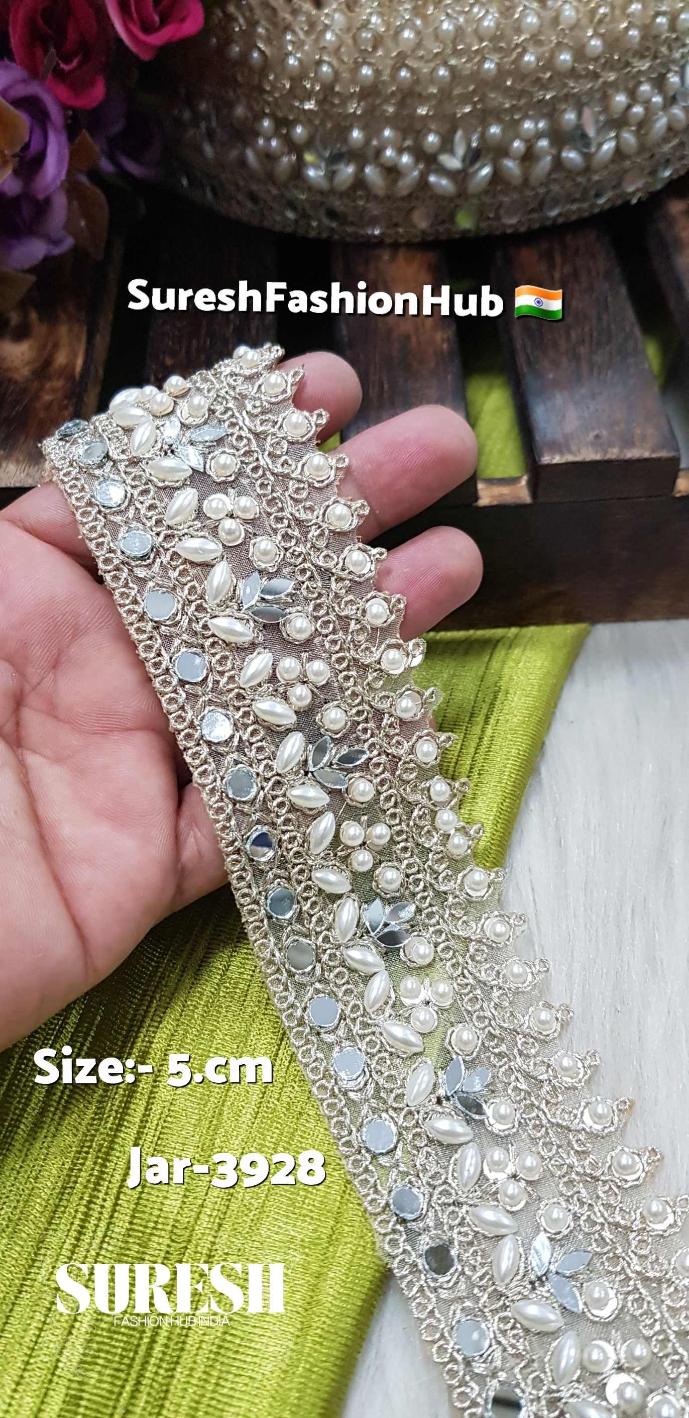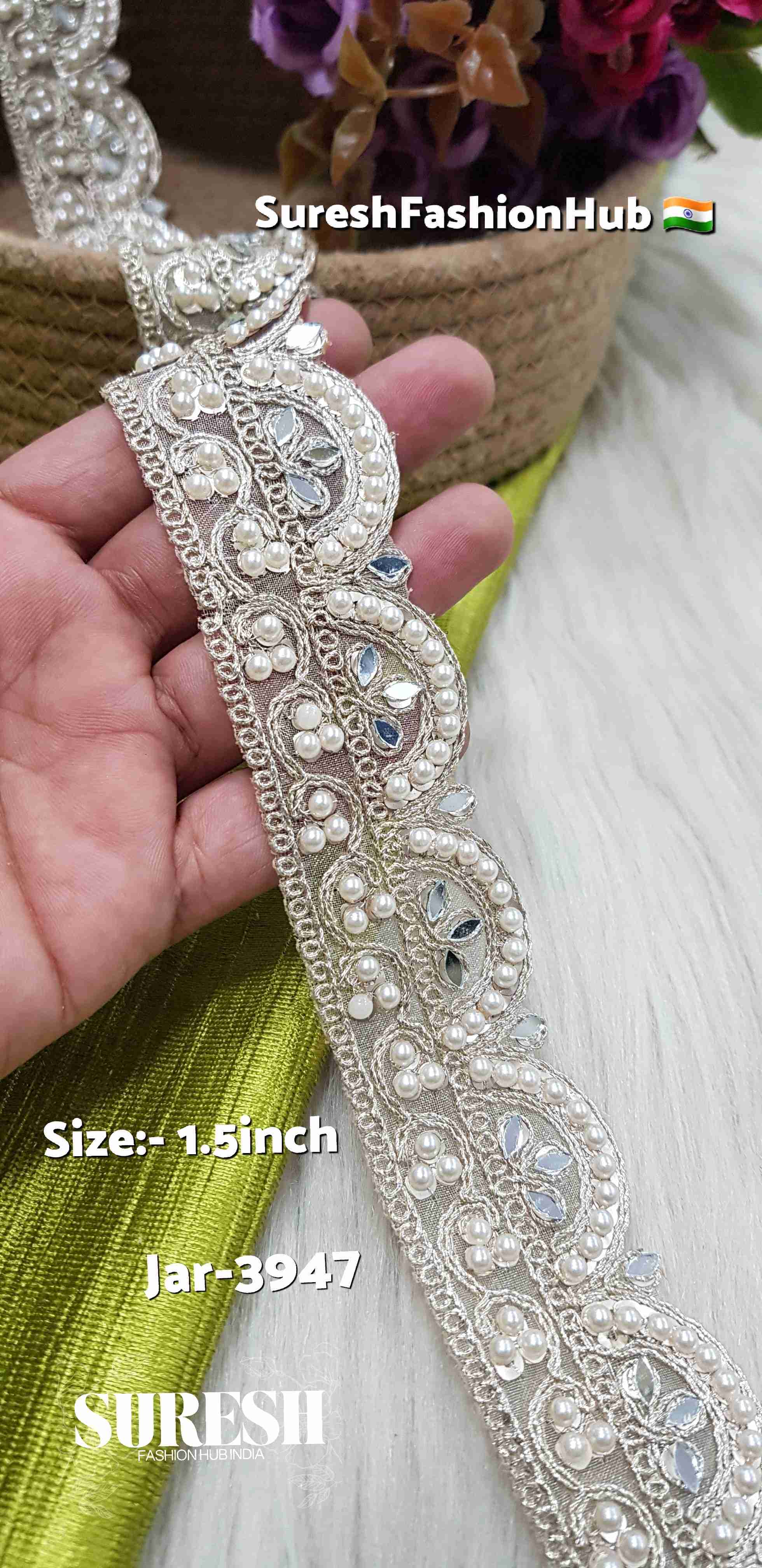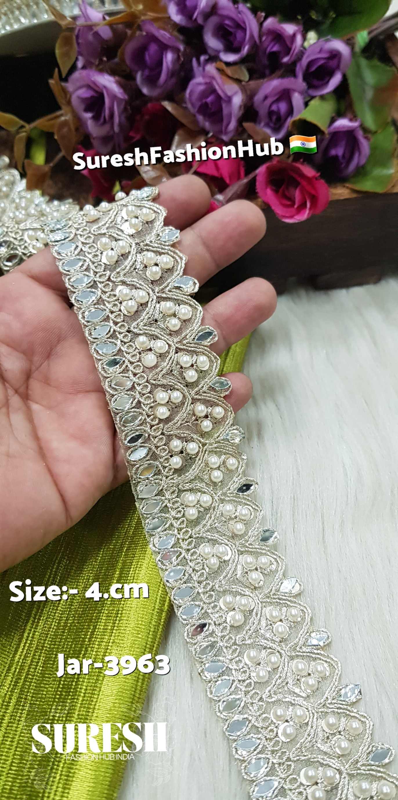 Pearl Shade Mirror & Moti Dori Lace – Jar-3928