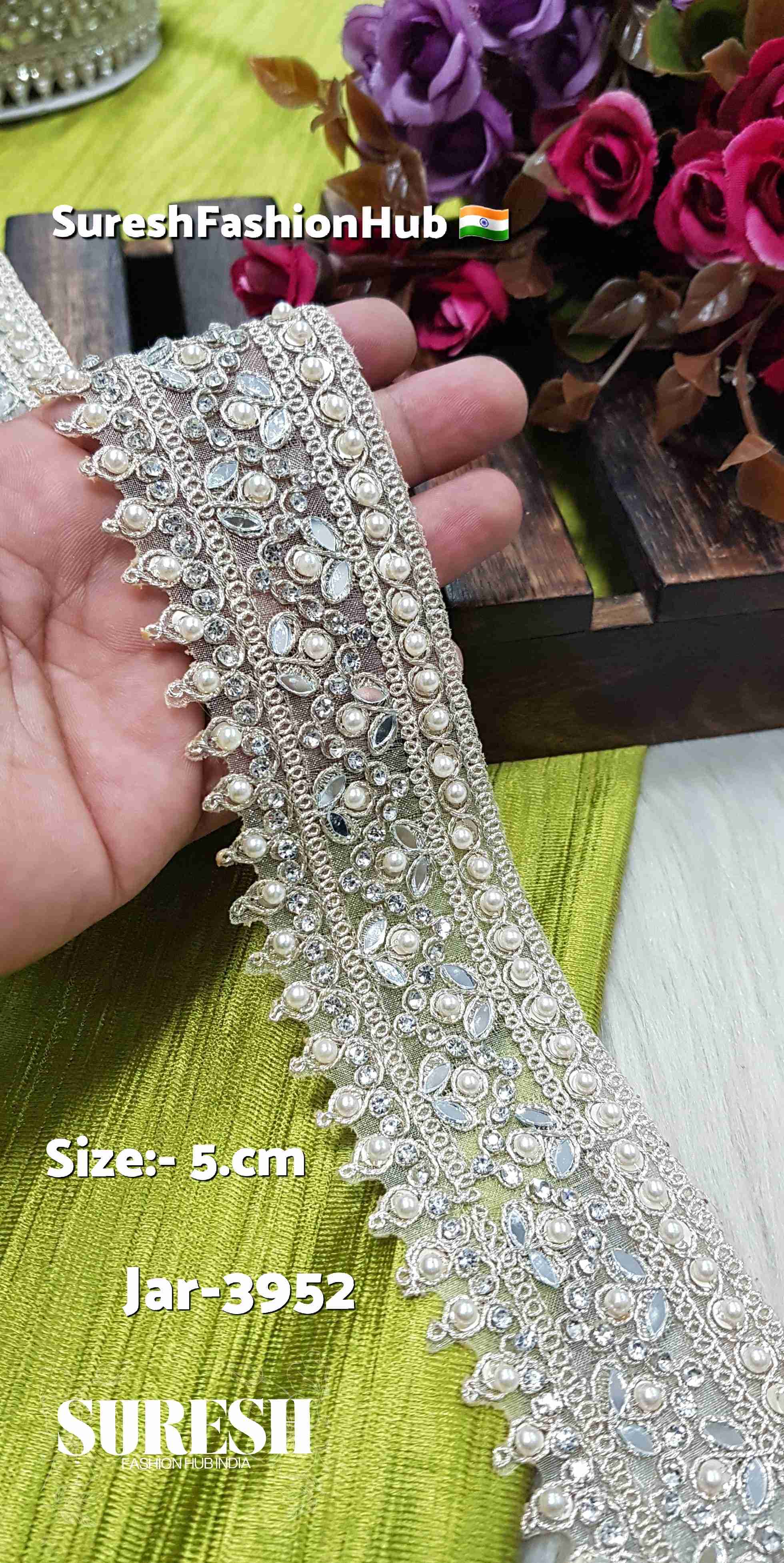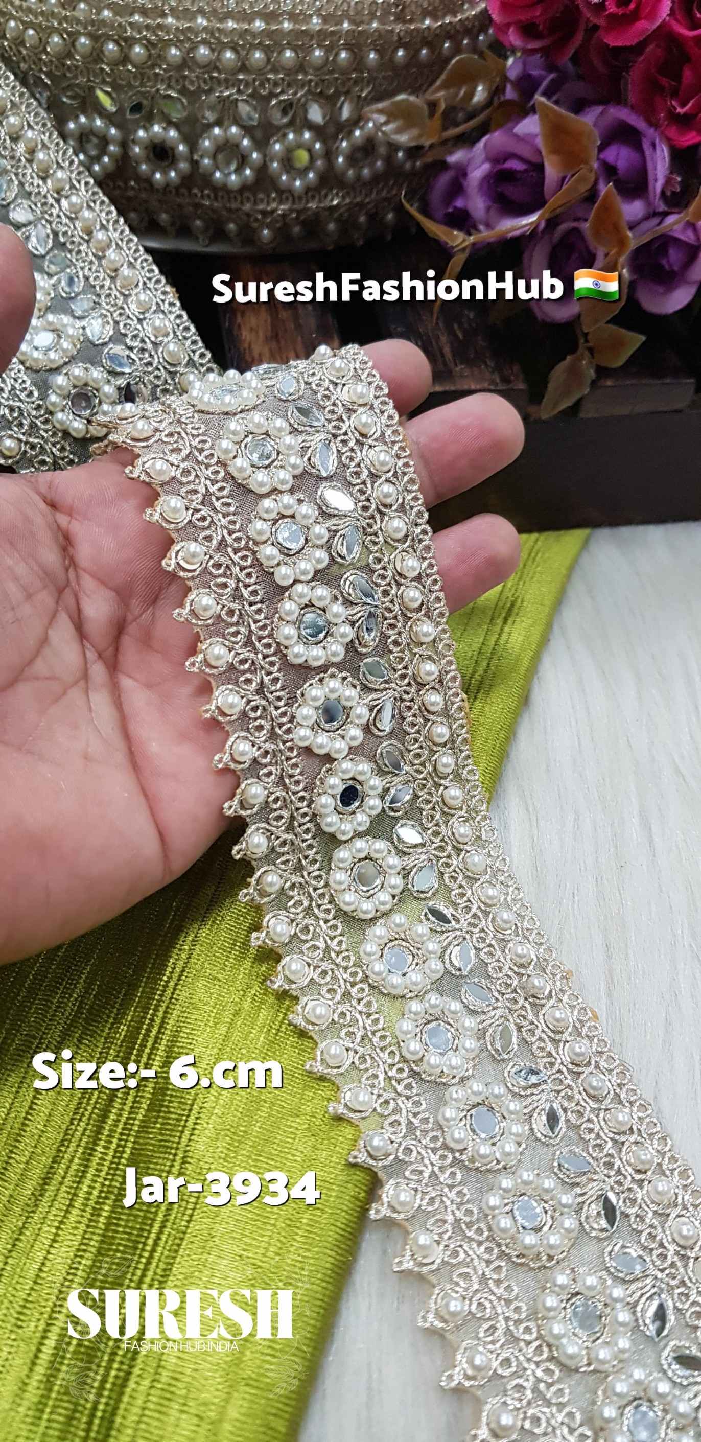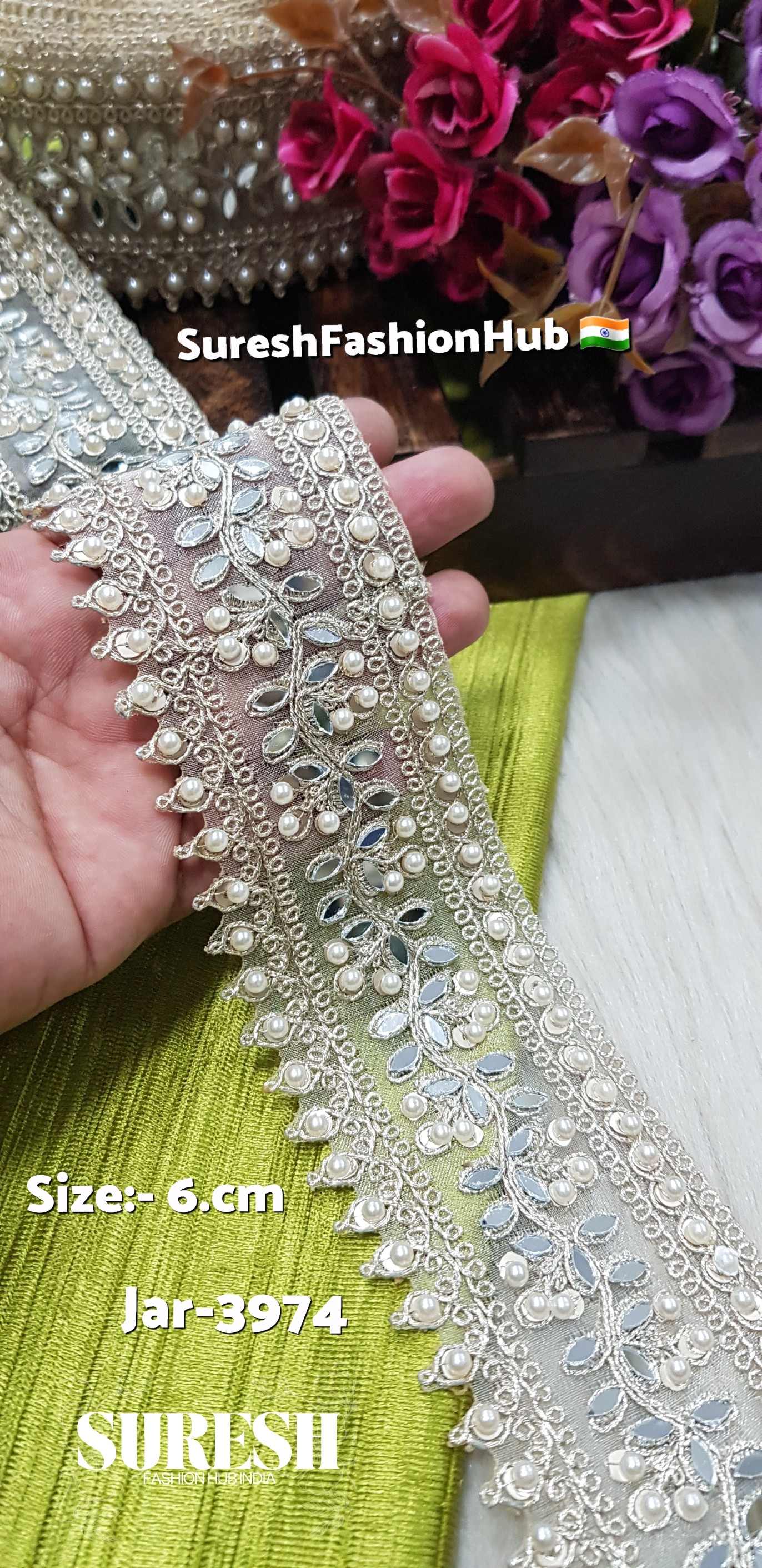 Pearl Shade Mirror & Moti Dori Lace – Jar-3928