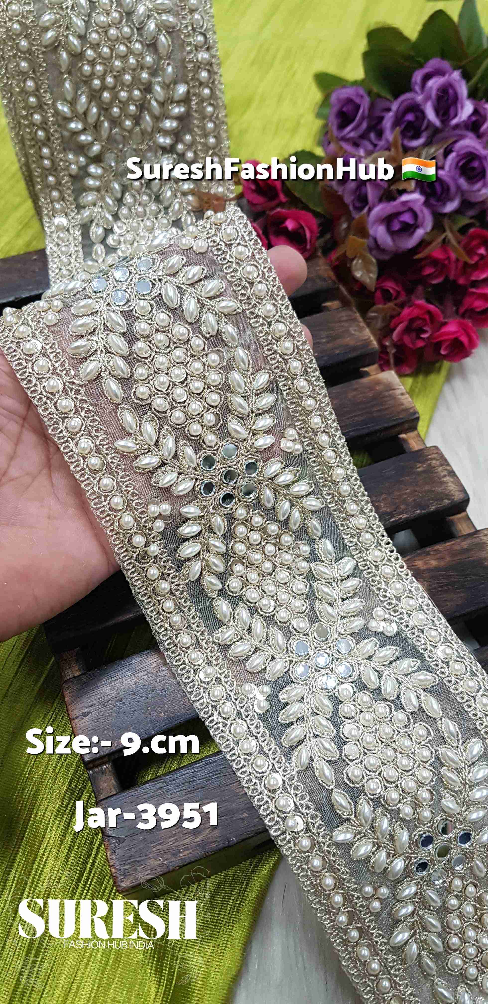 Pearl Shade Mirror & Moti Dori Lace – Jar-3929
