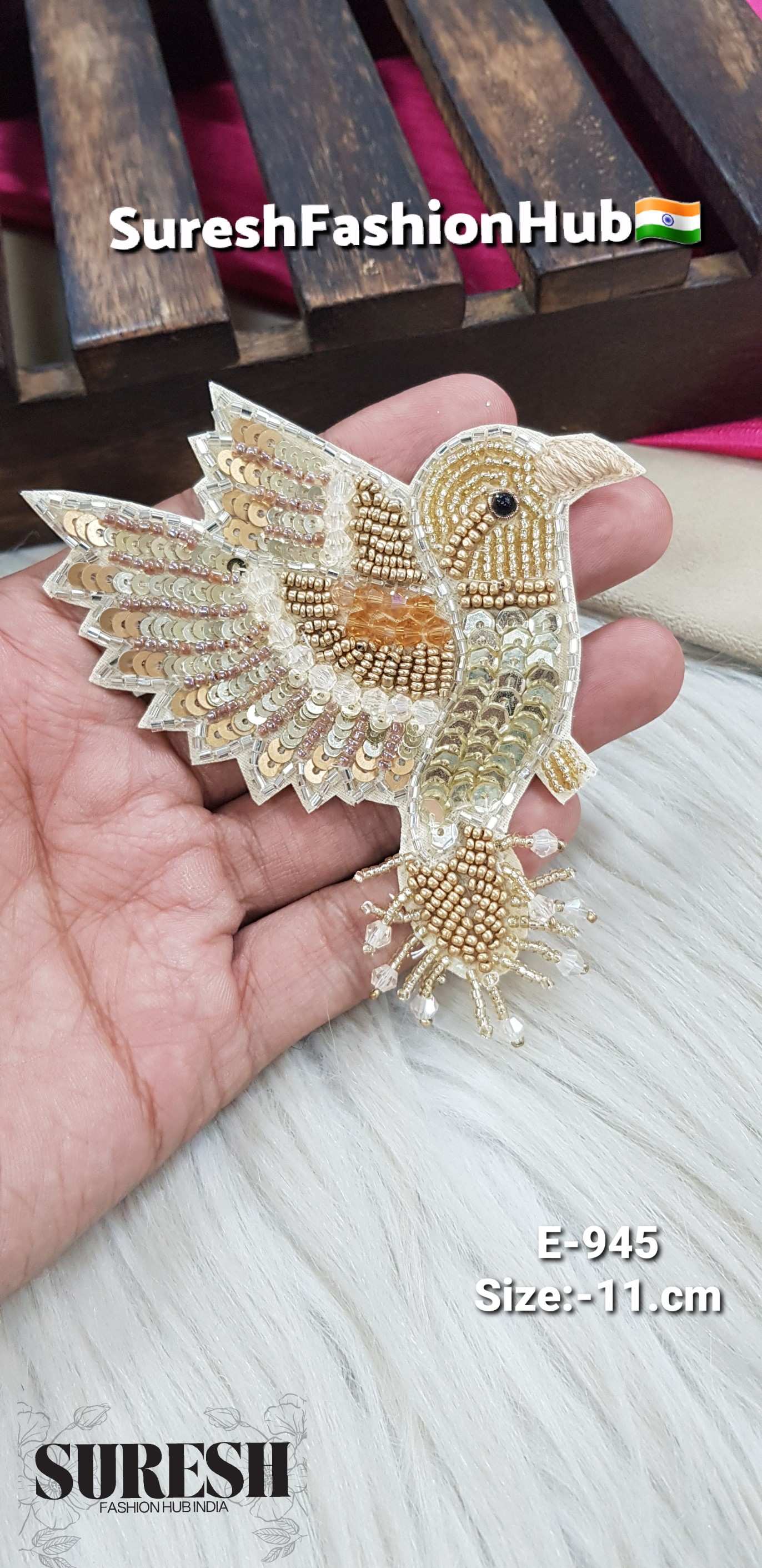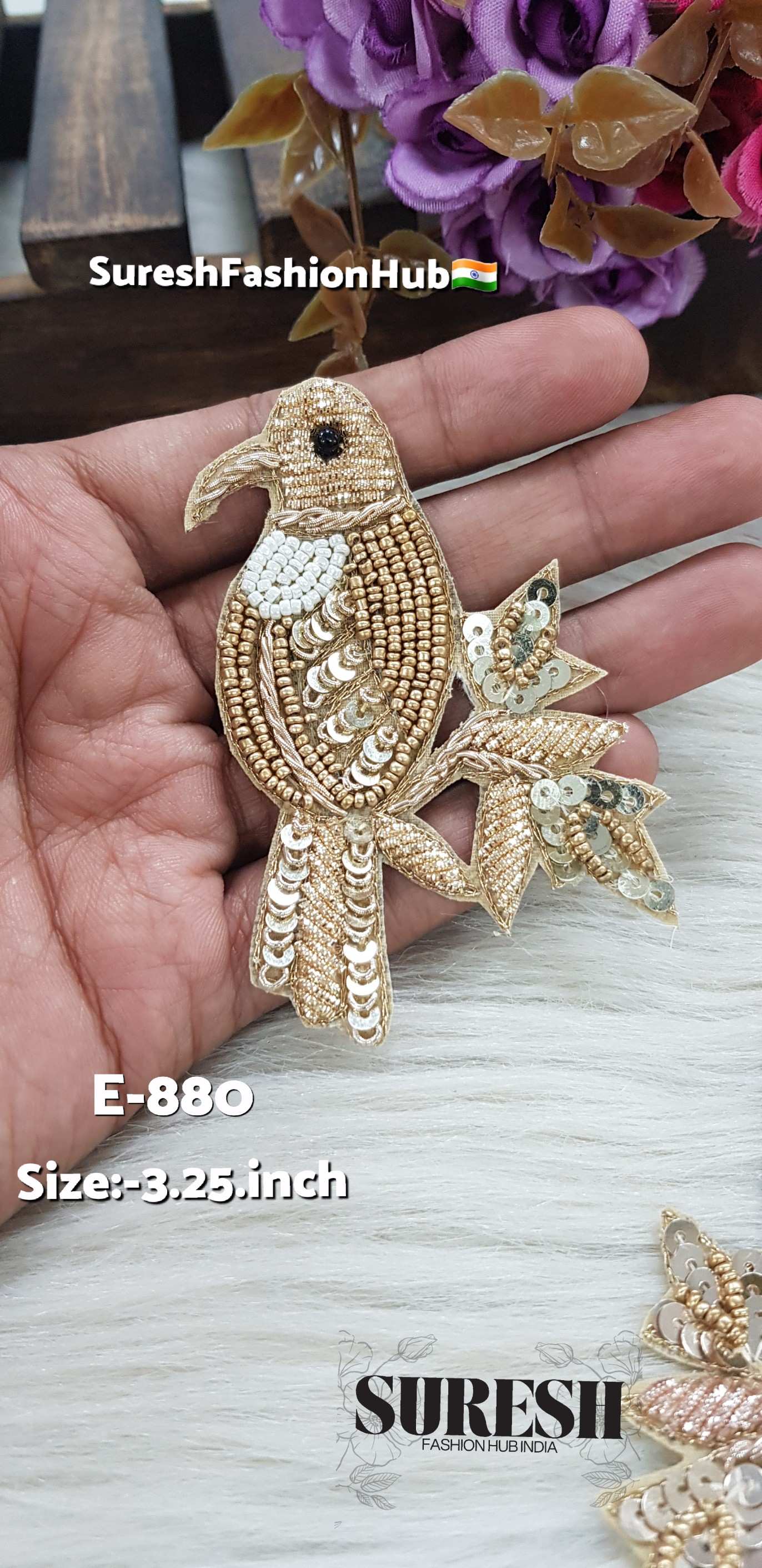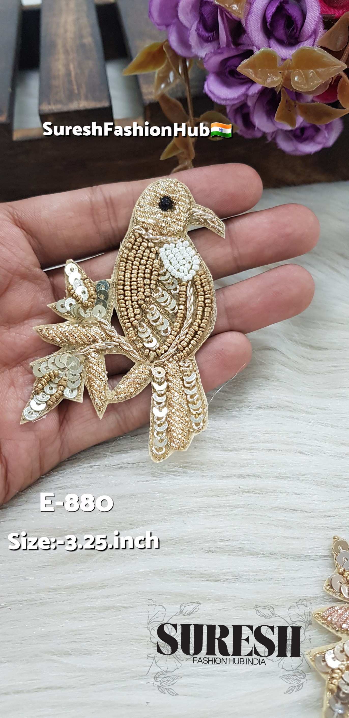 Gold Zardosi Bird Patch – Left Facing (E-880)