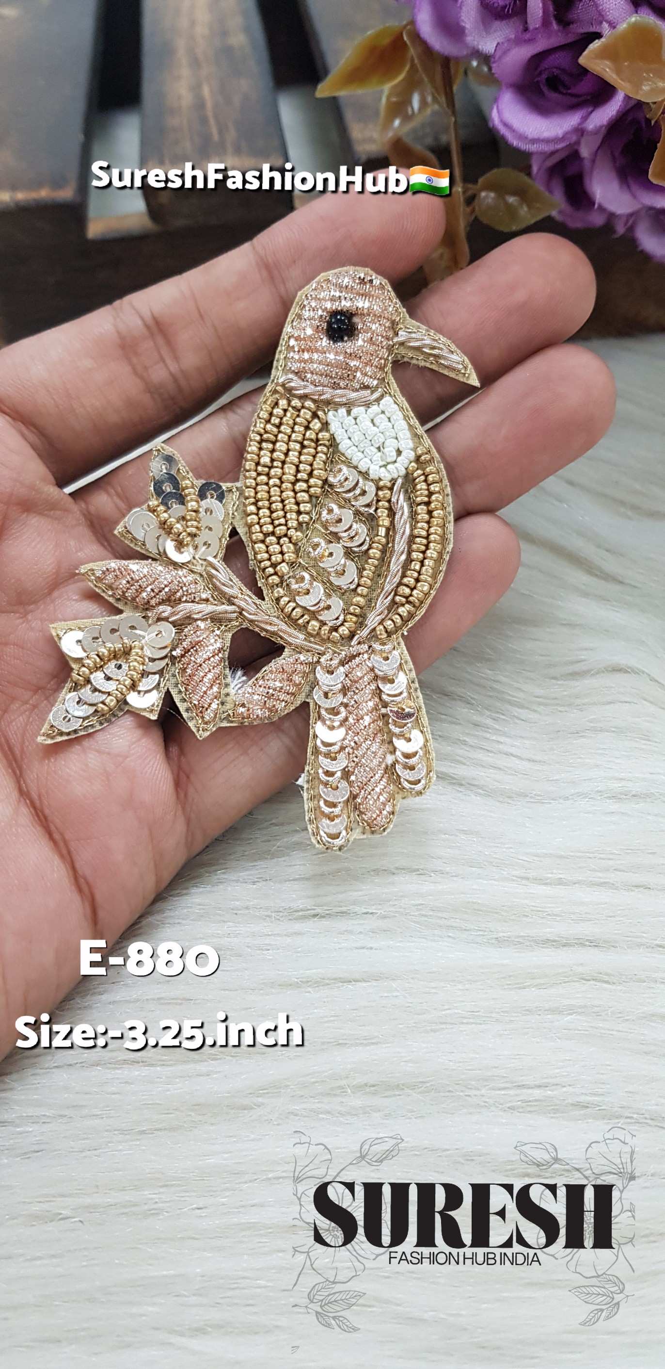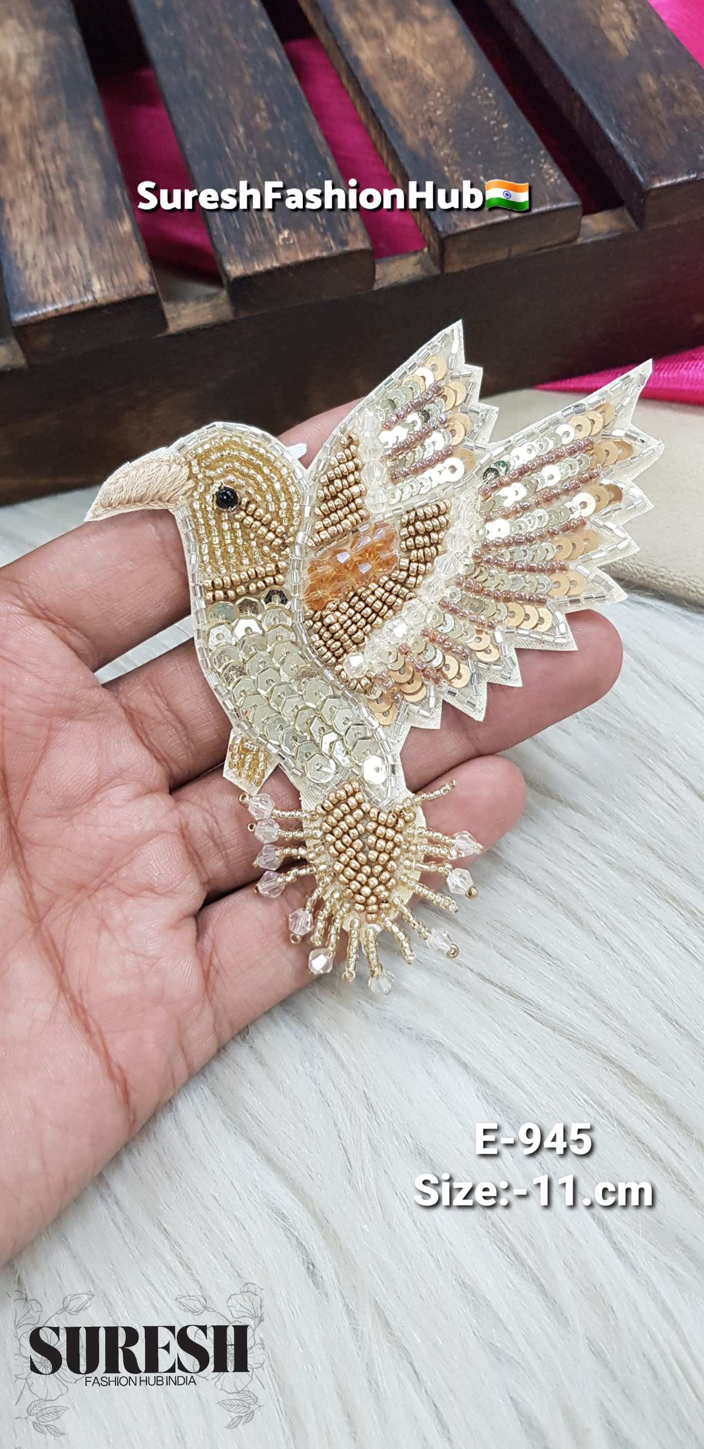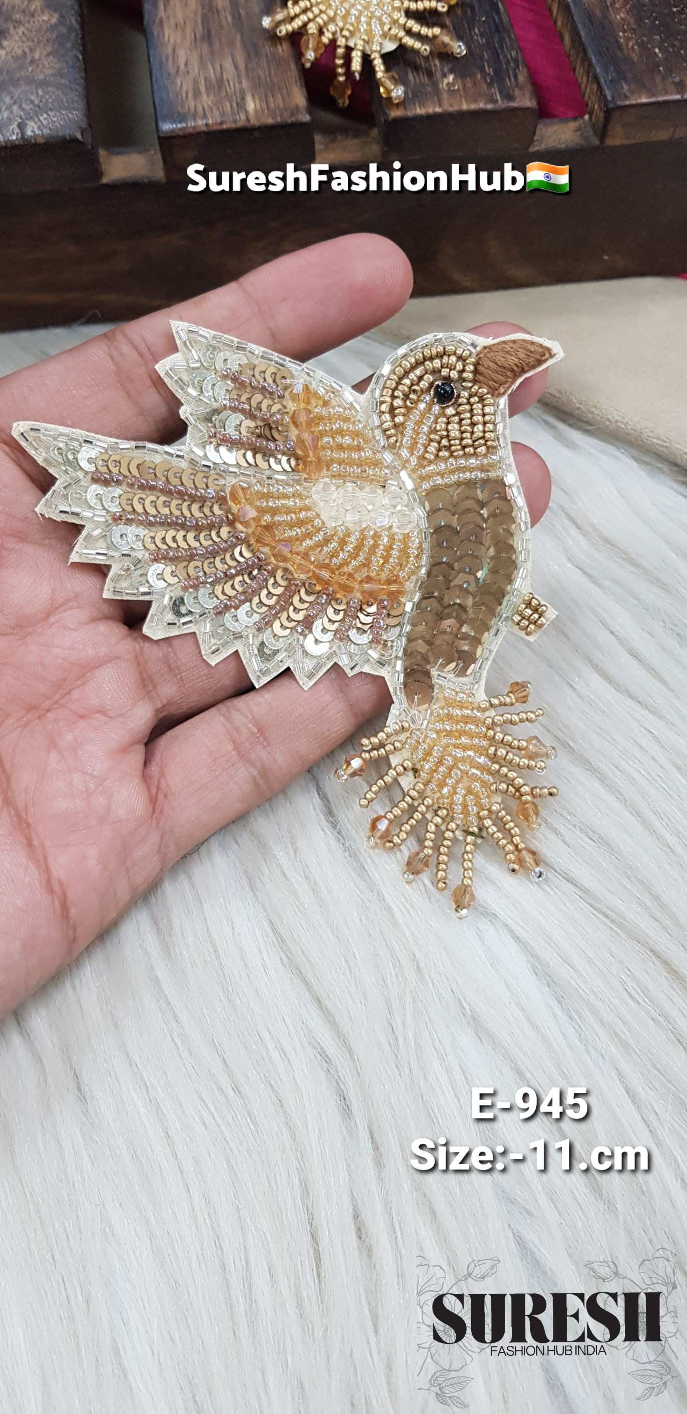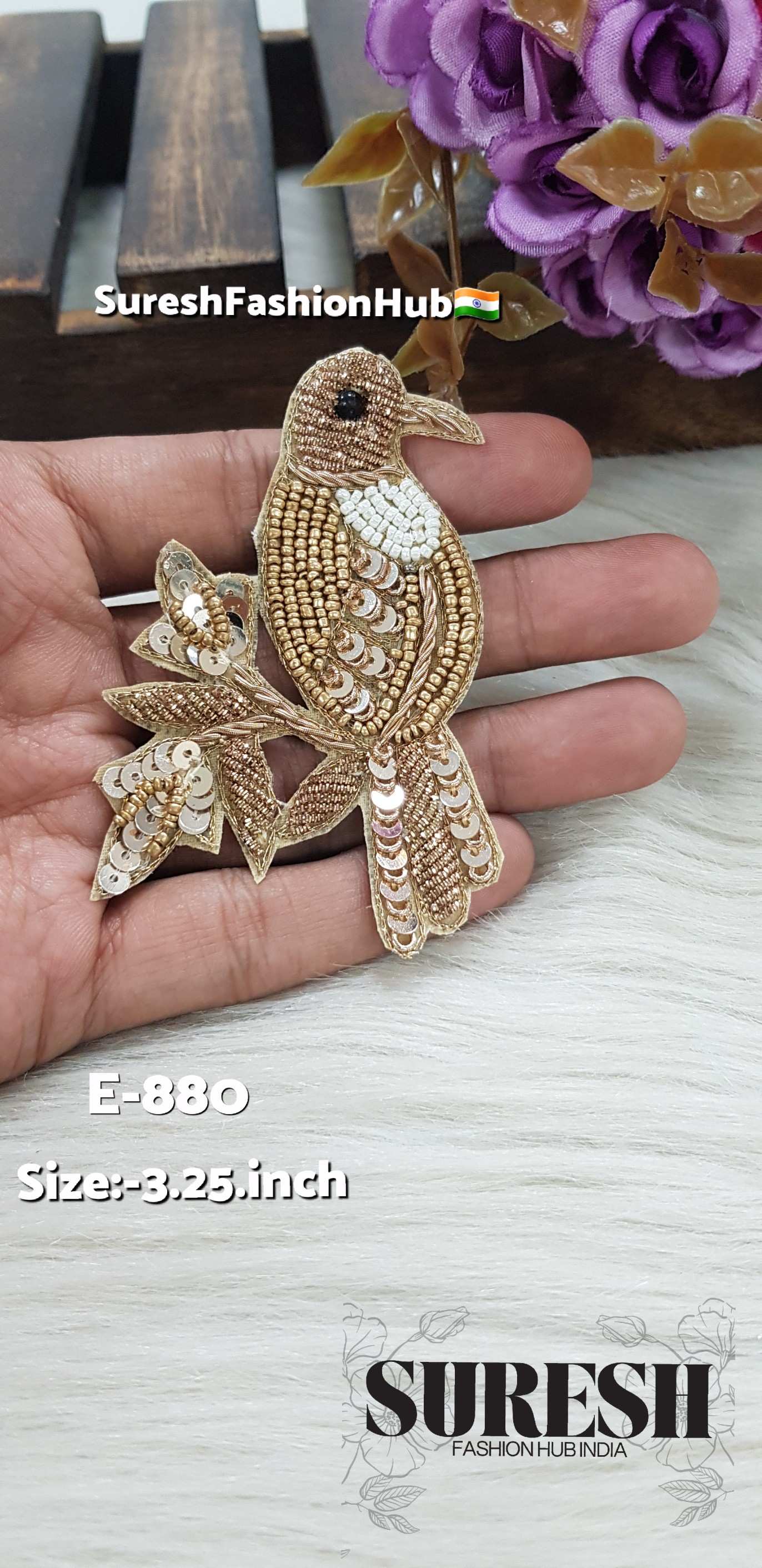 Gold Zardosi Bird Patch – Left Facing (E-880)