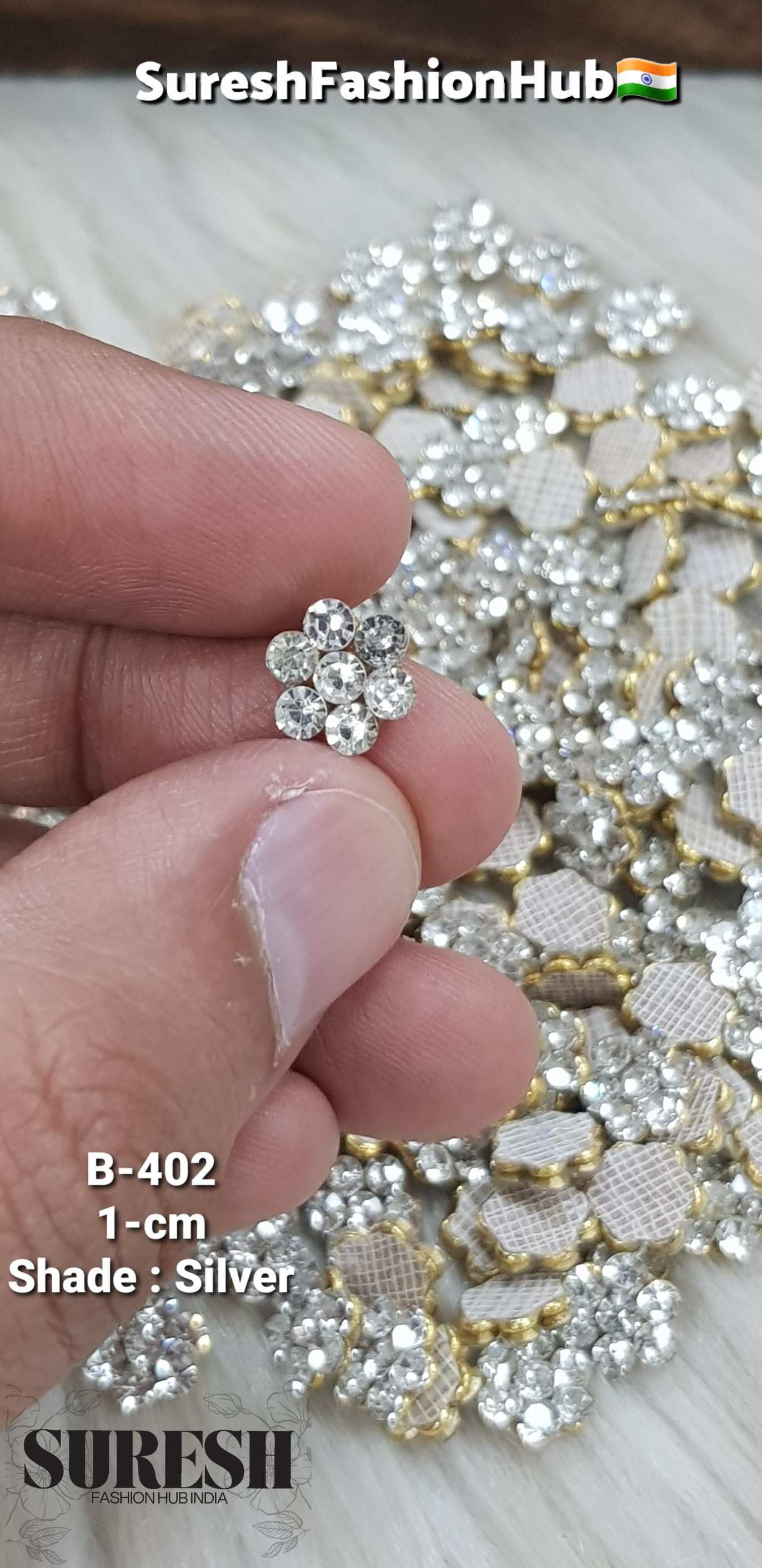 B-402 Silver Handmade Diamond Floral Butti