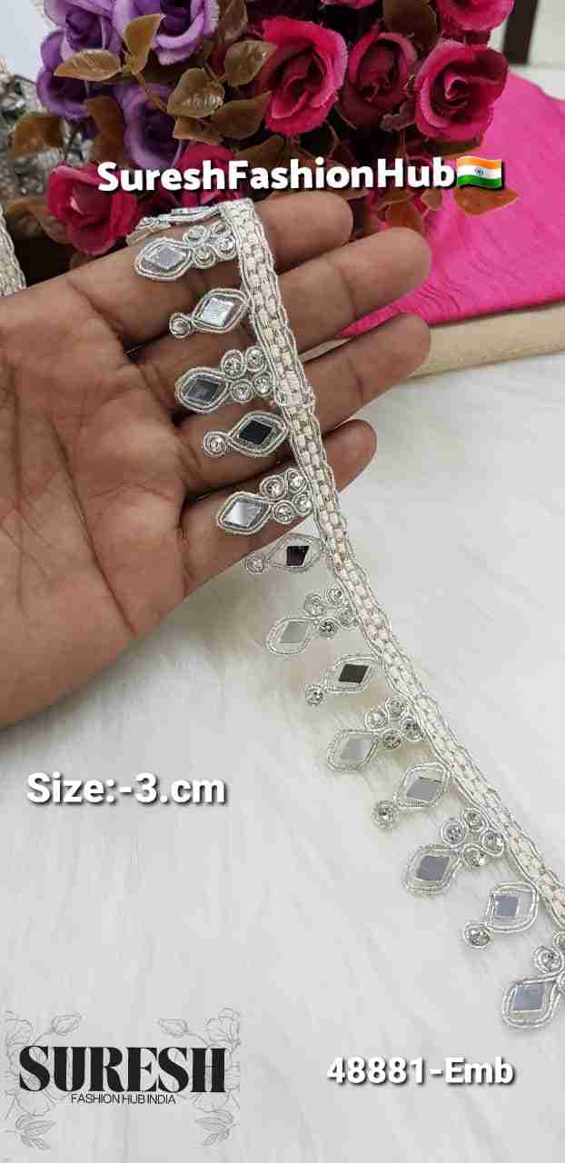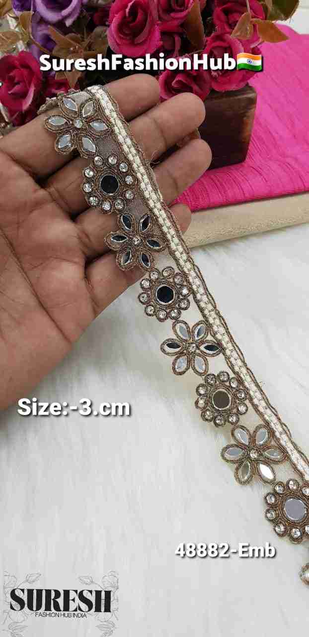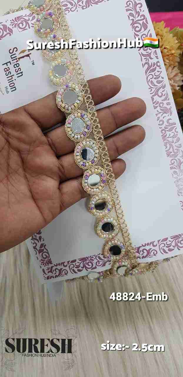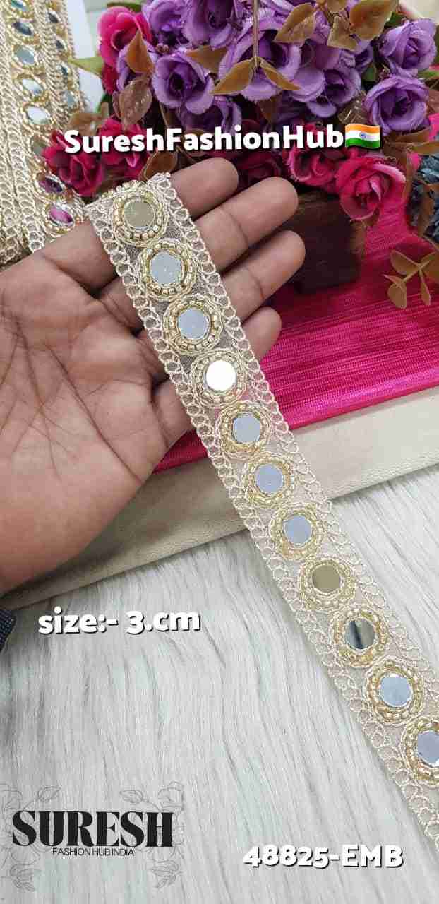 Multi Round Mirror Cutdhana Designer Border Lace – 48825-EMB