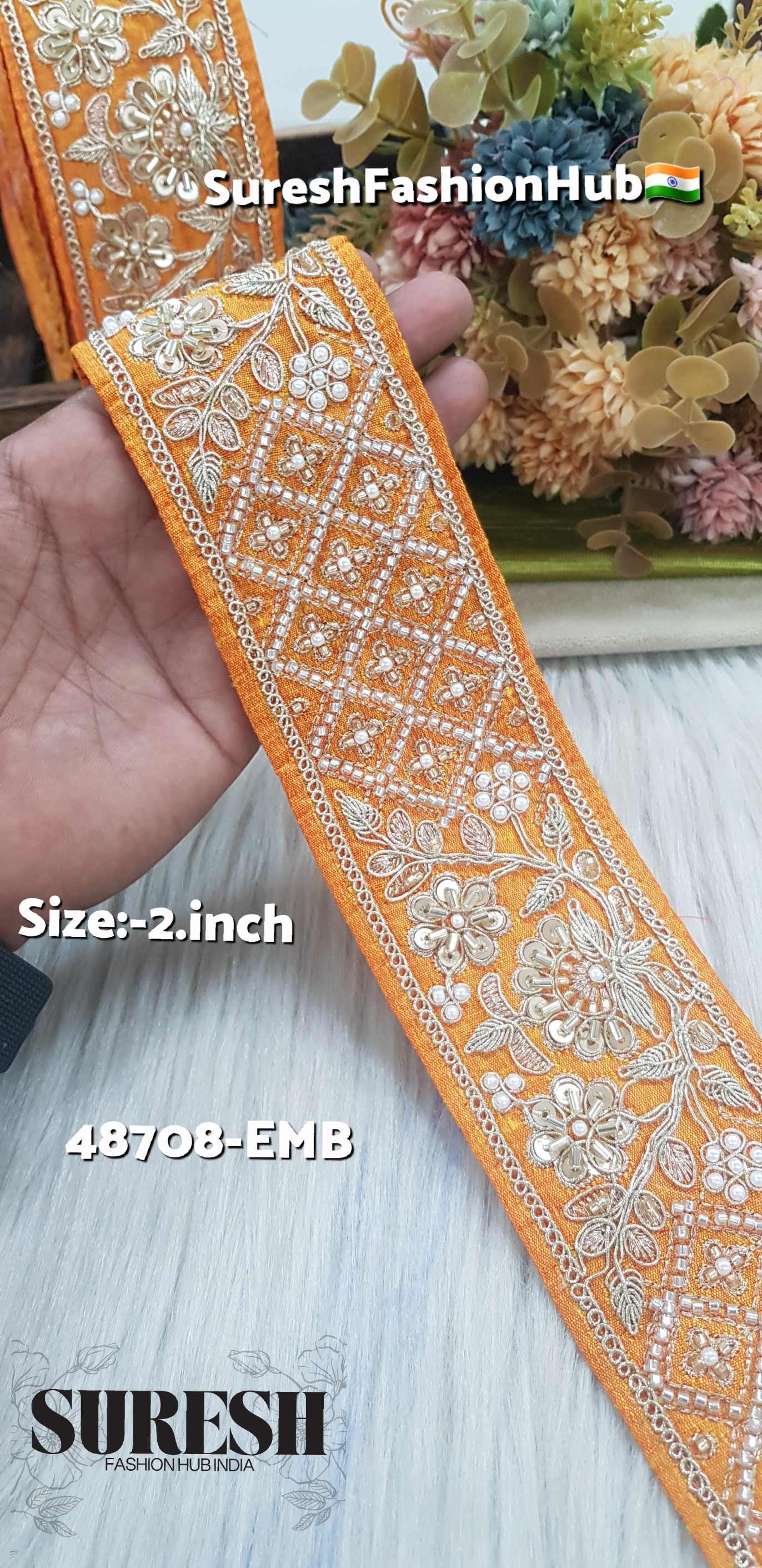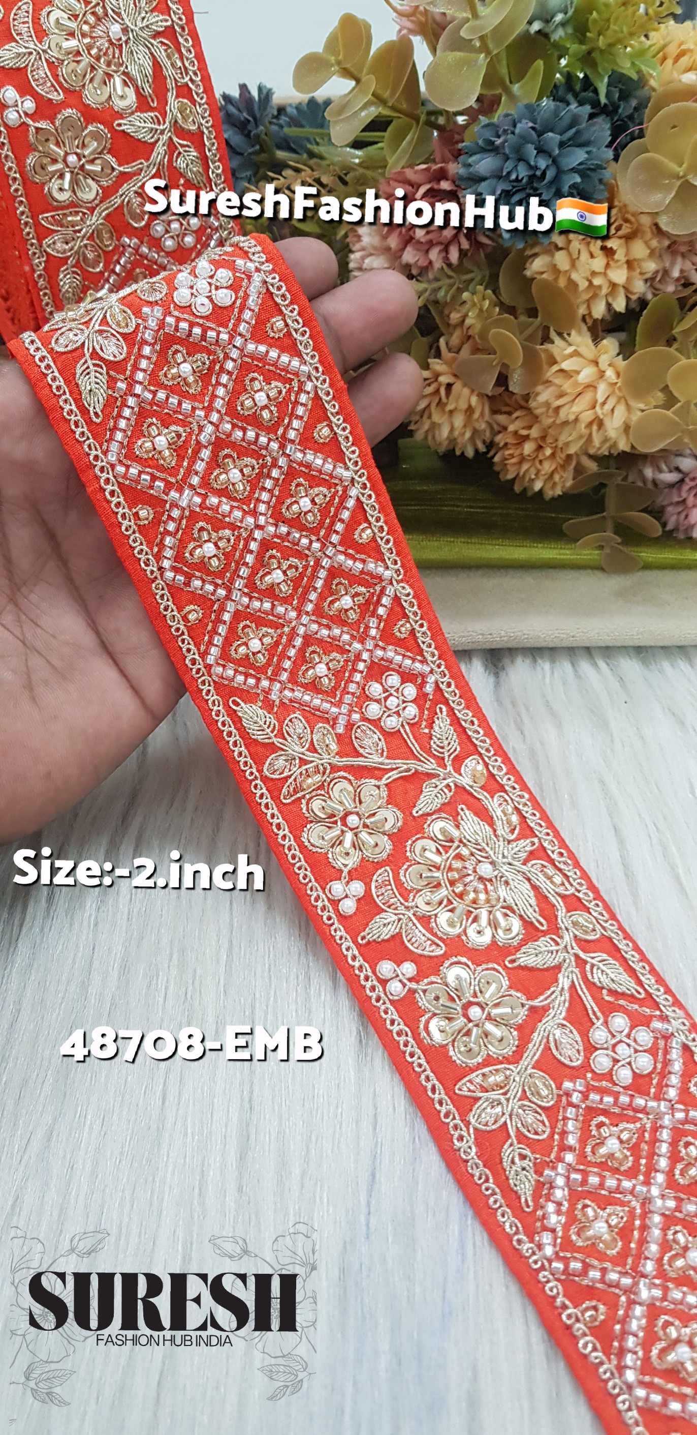 Orange Floral Dori Embroidery Lace – 48708-Emb