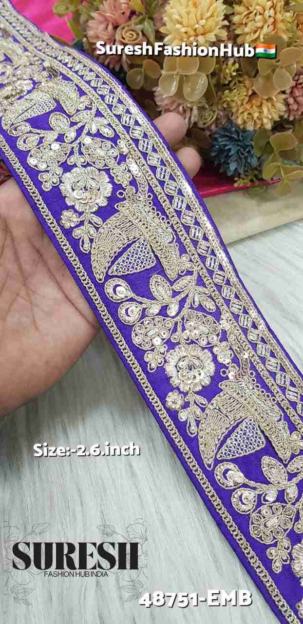 Purple Royal Ship Floral Chappat Border – 48751-Emb