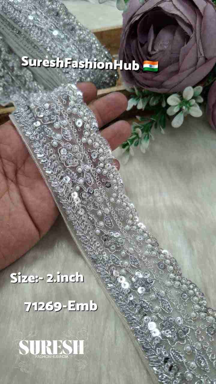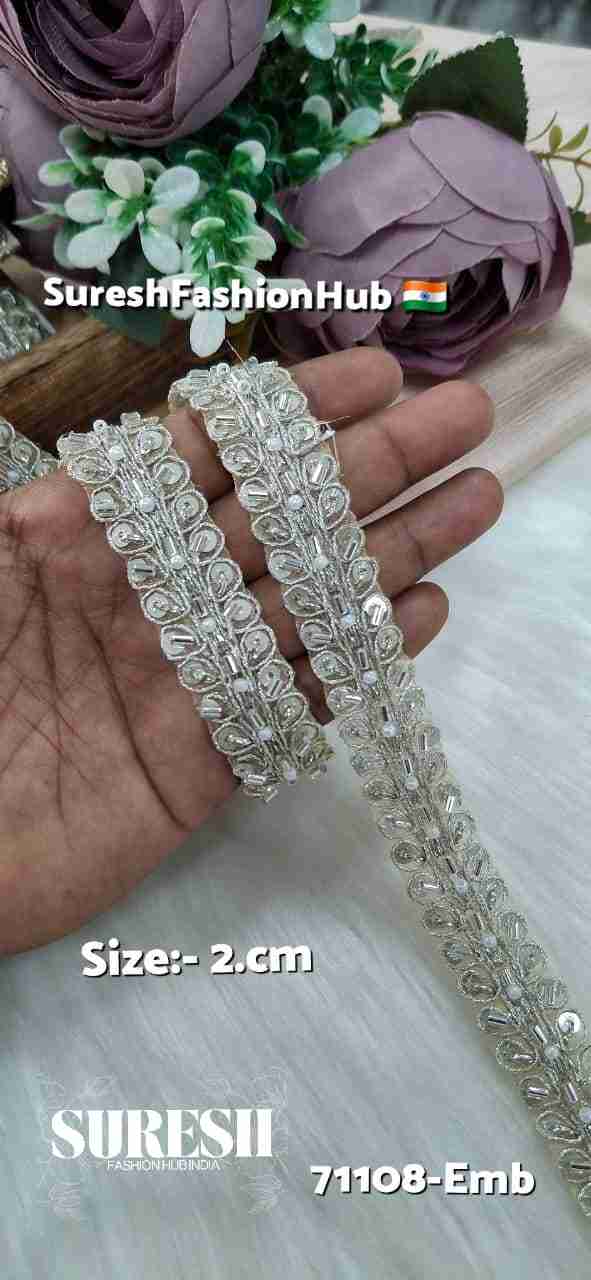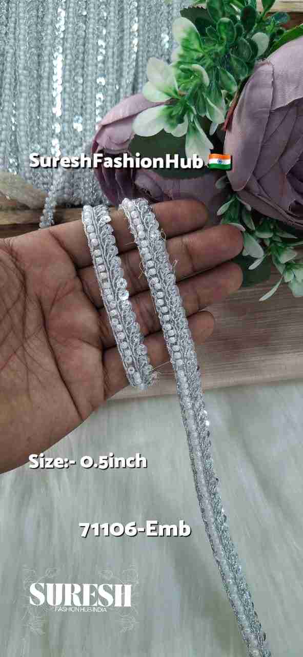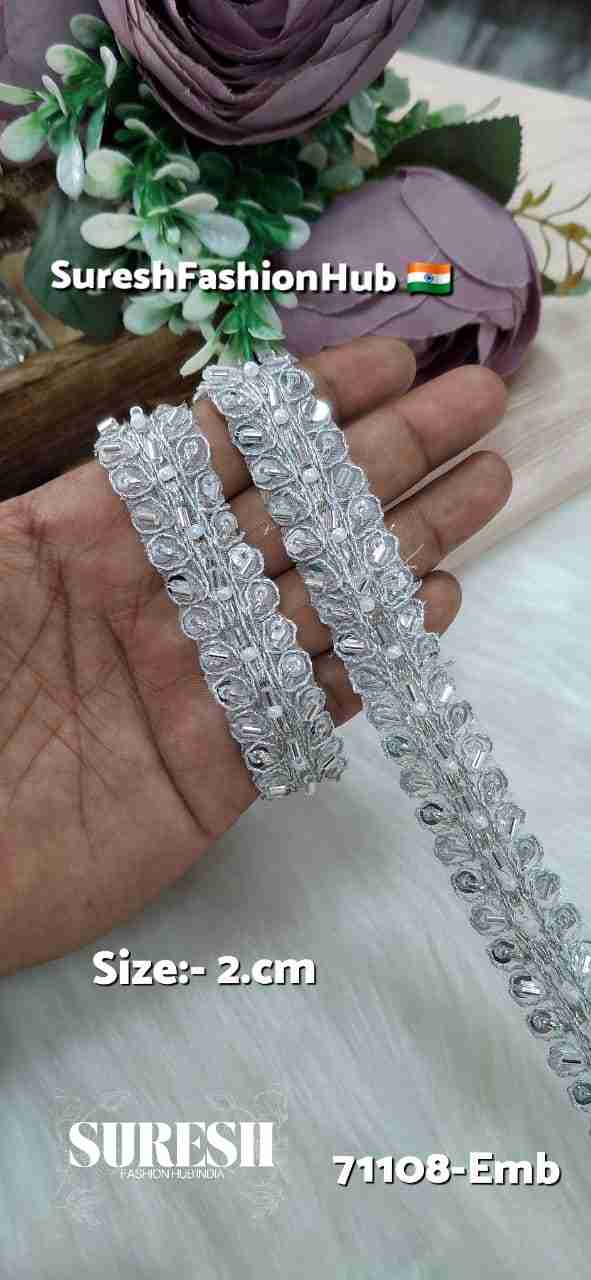 Silver Regal Pearl Dori Cutdhana Organza Patti Lace – 71108-Emb