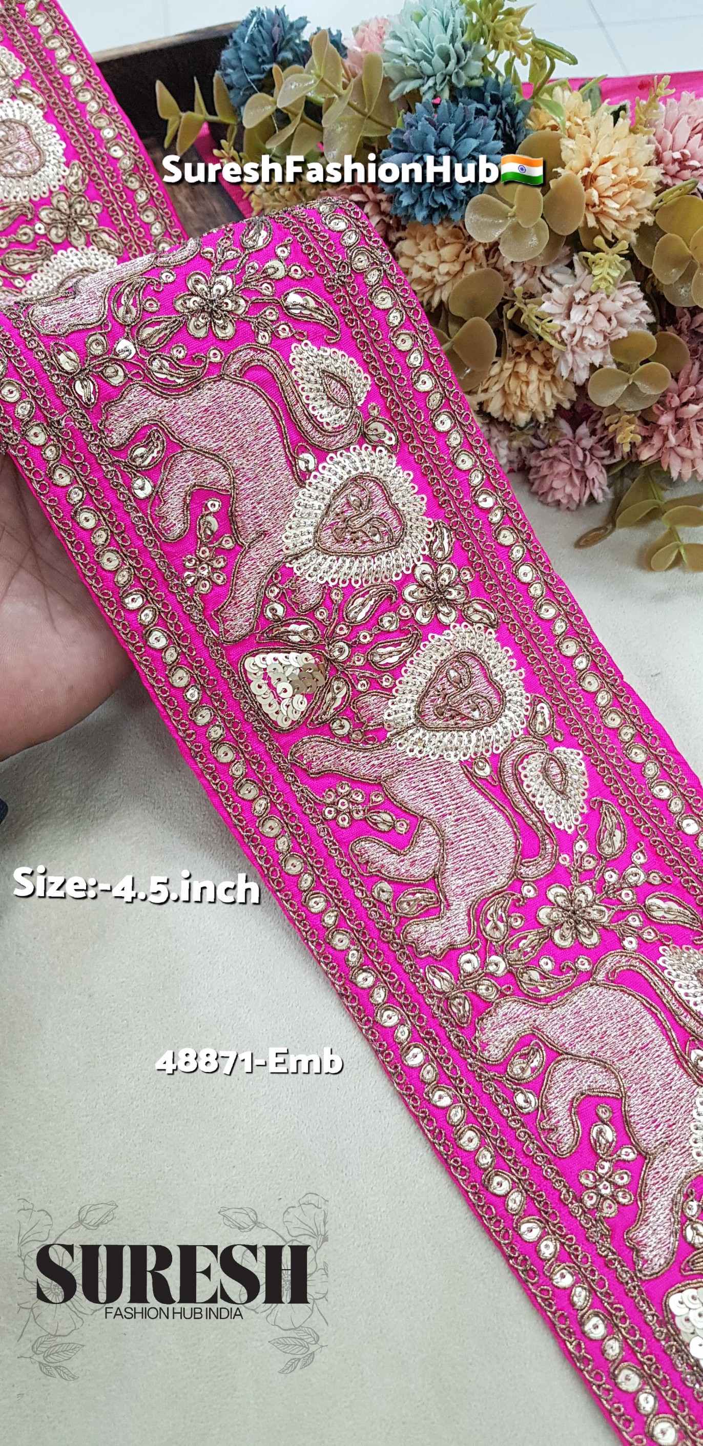 Rani Sabyasachi Inspired Lion Embroidery Lace – 48871-Emb