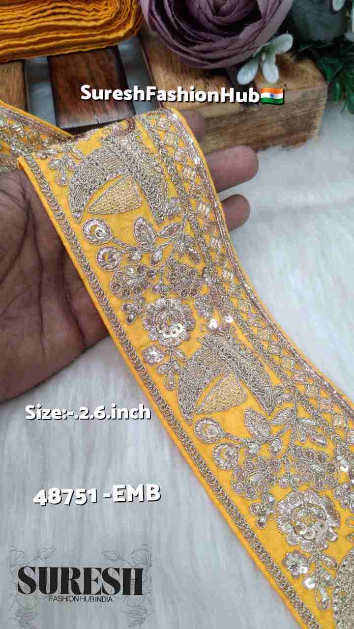 Yellow Royal Ship Floral Chappat Border – 48751-Emb