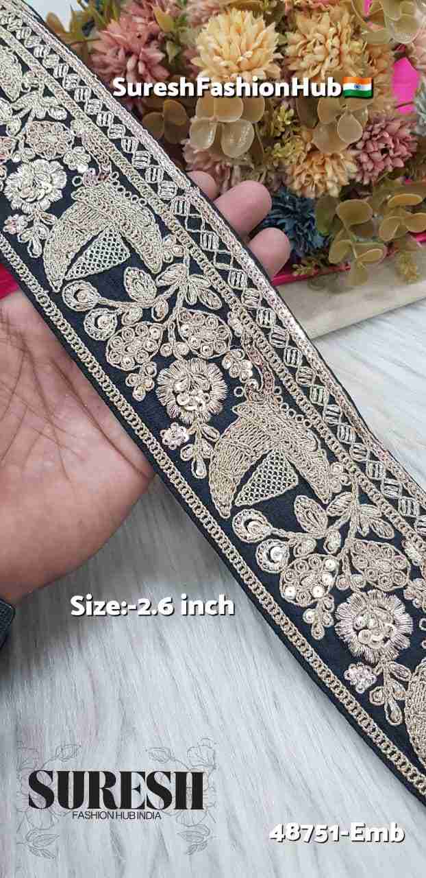 Black Royal Ship Floral Chappat Border – 48751-Emb