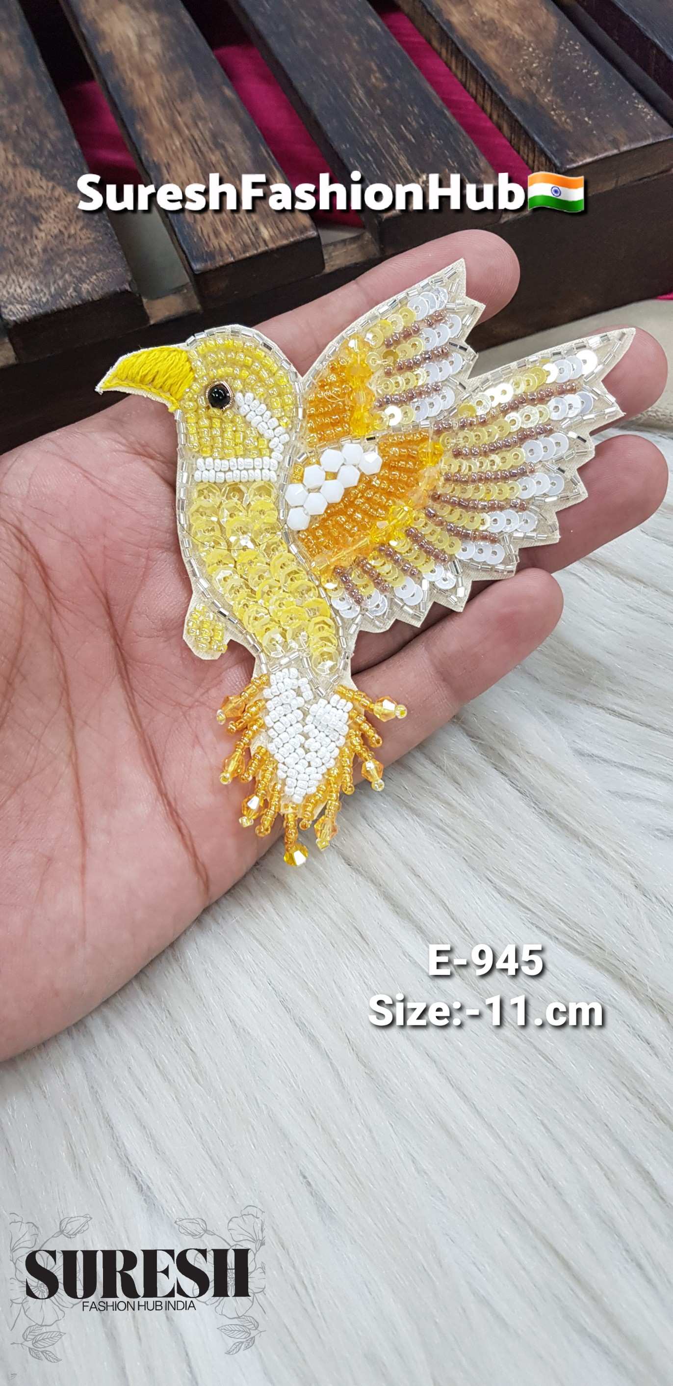 Left Facing Yellow Multicolor Bird Patch – E-945
