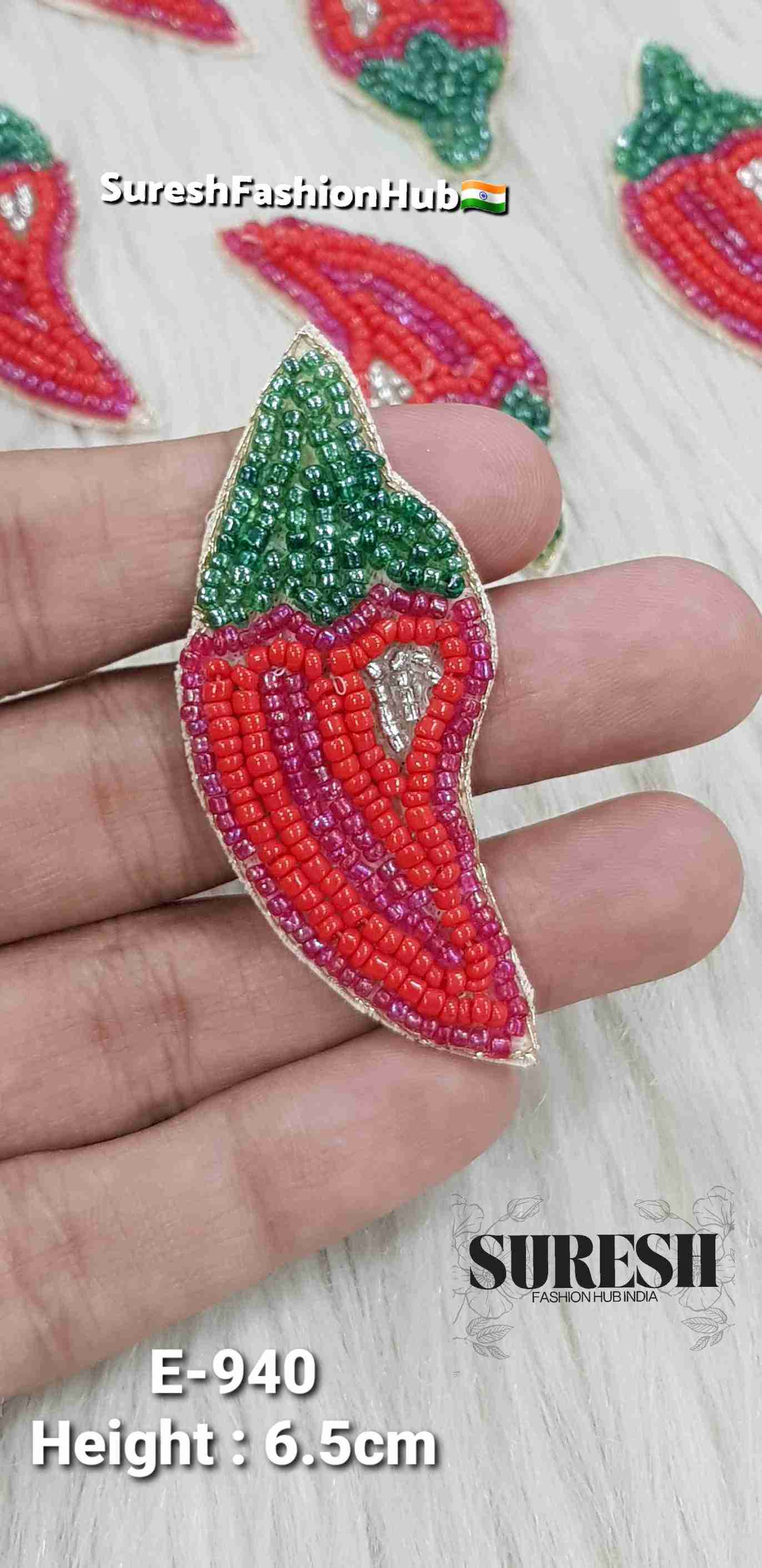 Handmade Red Chilli Beaded Patch – E-940