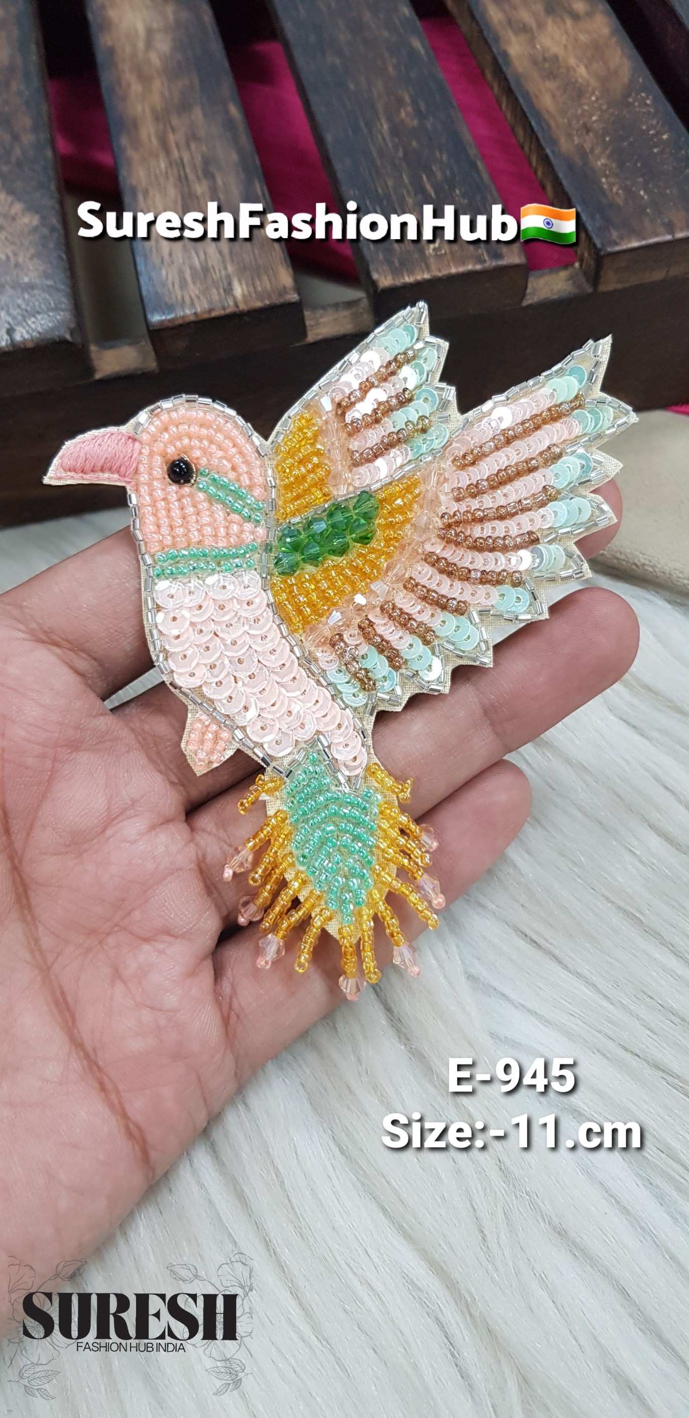 Right Facing Light Matt Multicolor Bird Patch – E-945
