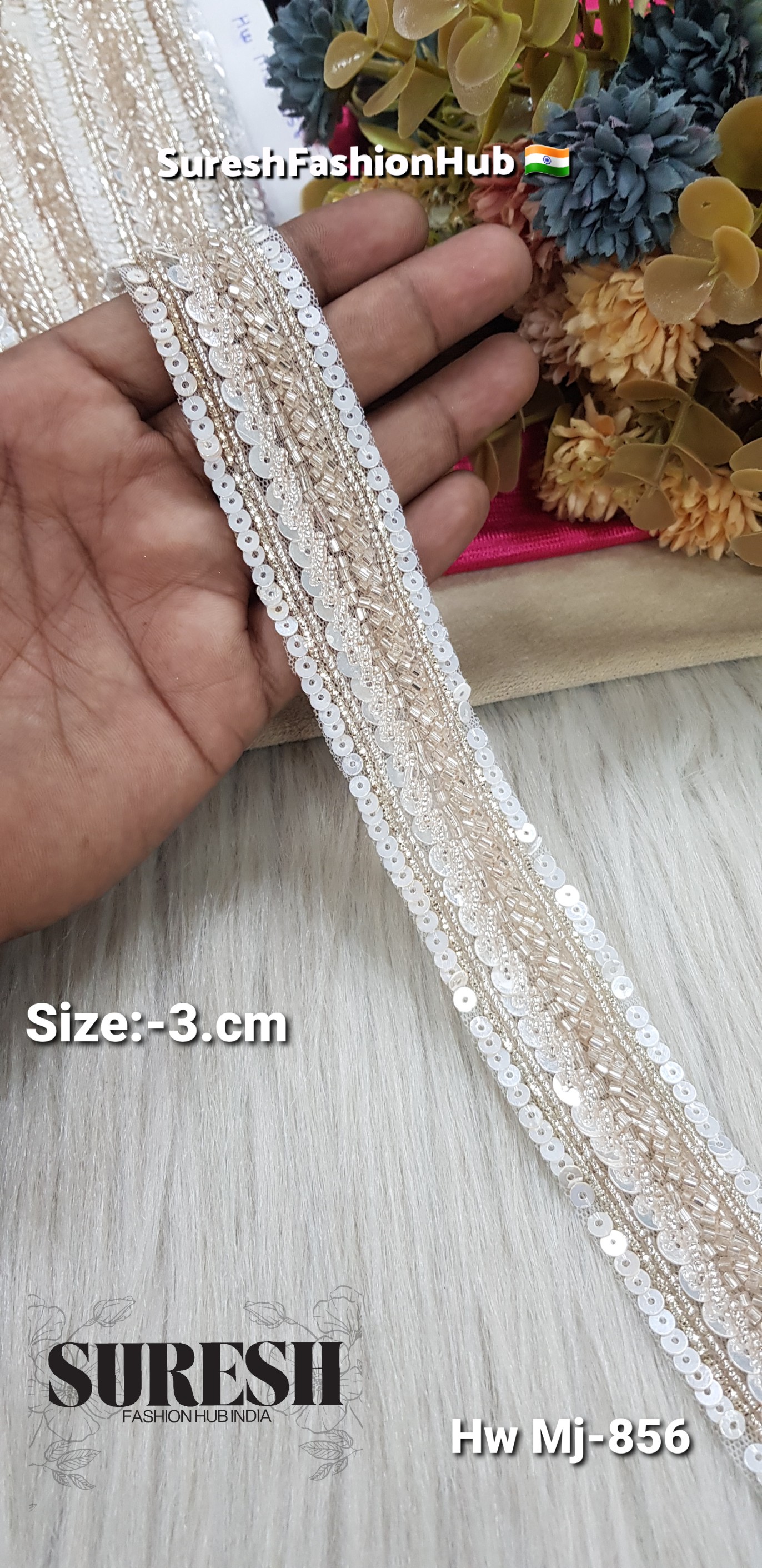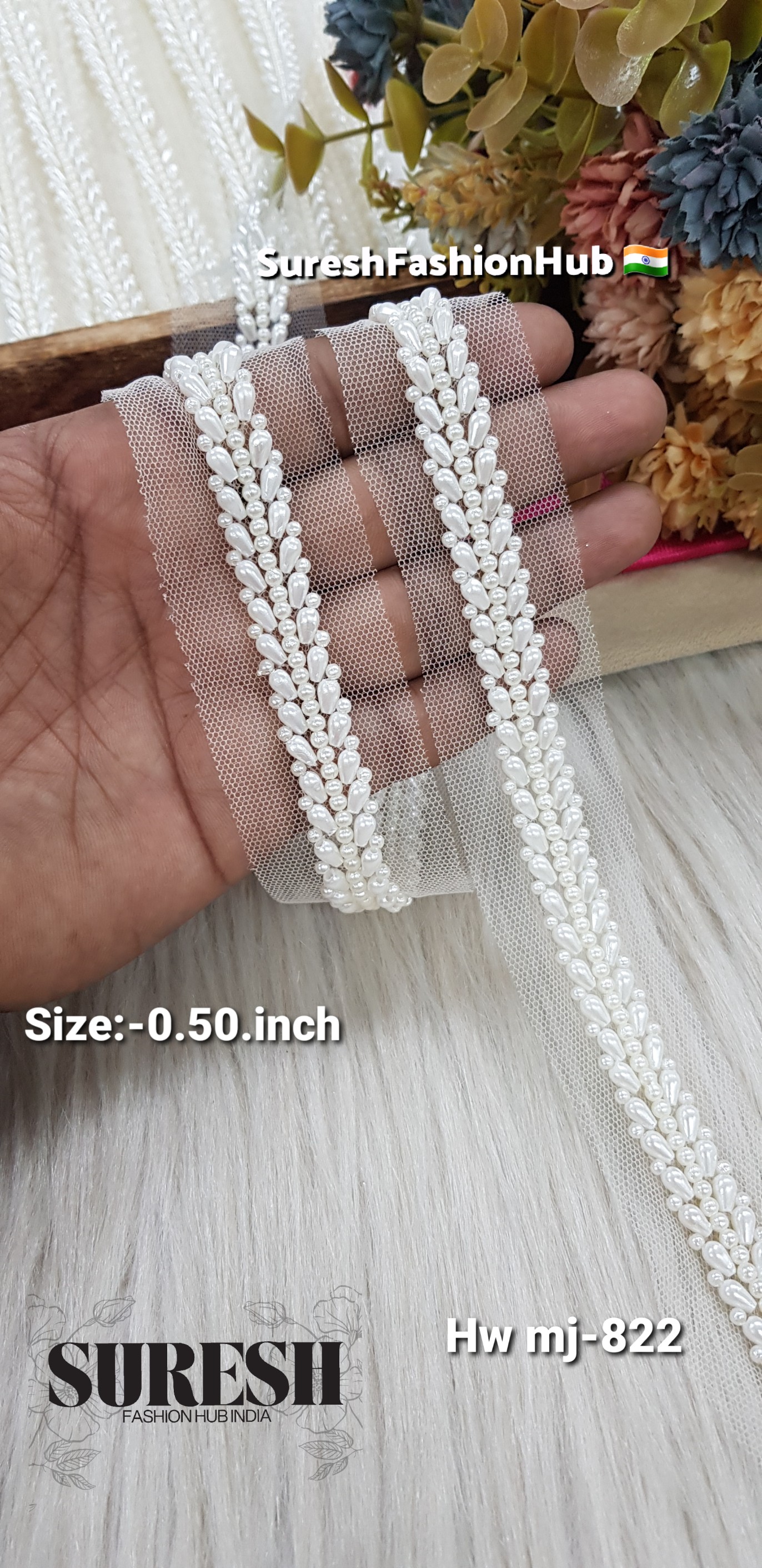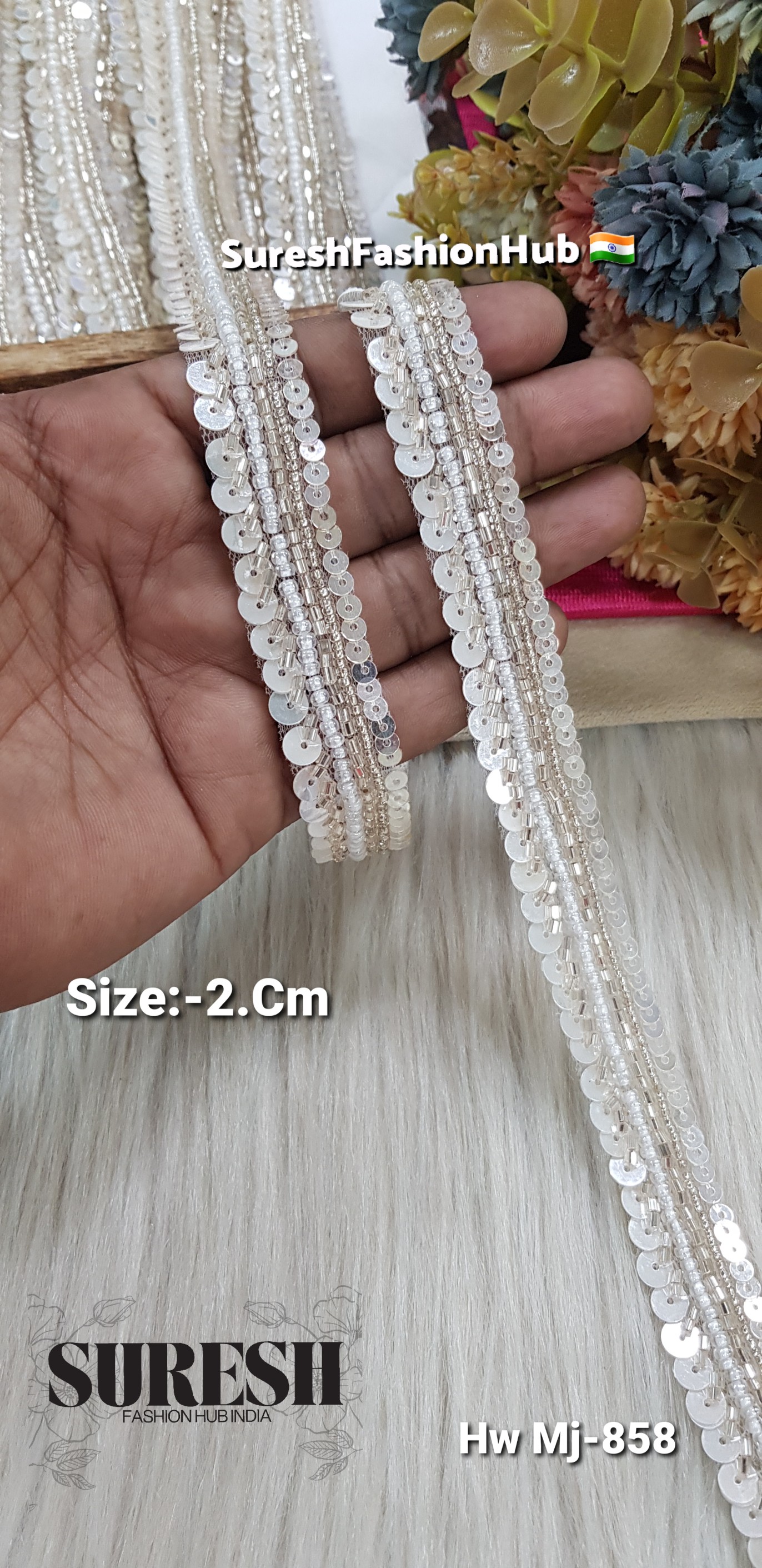 Pearl Matt Mirror Cutwork Handmade Border – Mj-830