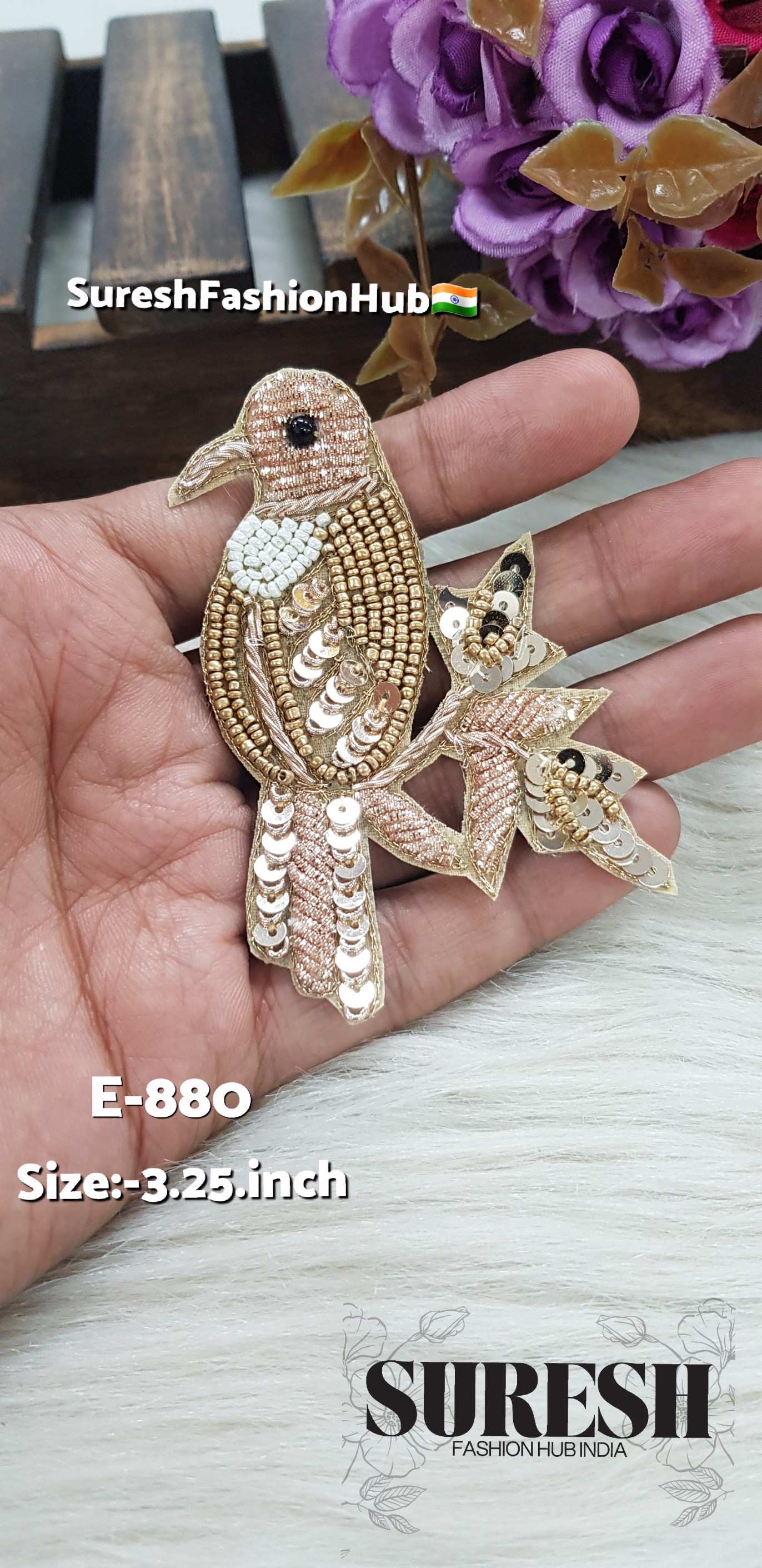 Rose Zardosi Bird Patch – Right Facing (E-880)