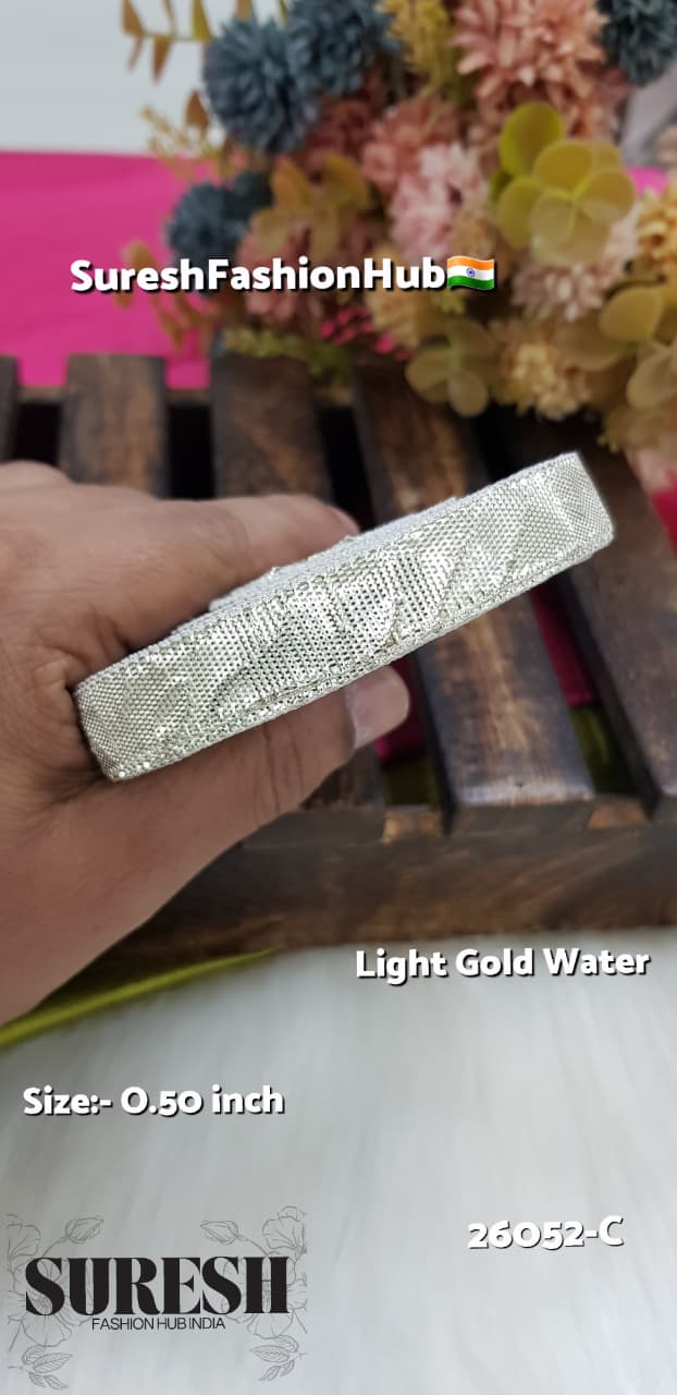 Light Gold Water Machine Made Gota Lumpi Lace – Design 26052-C