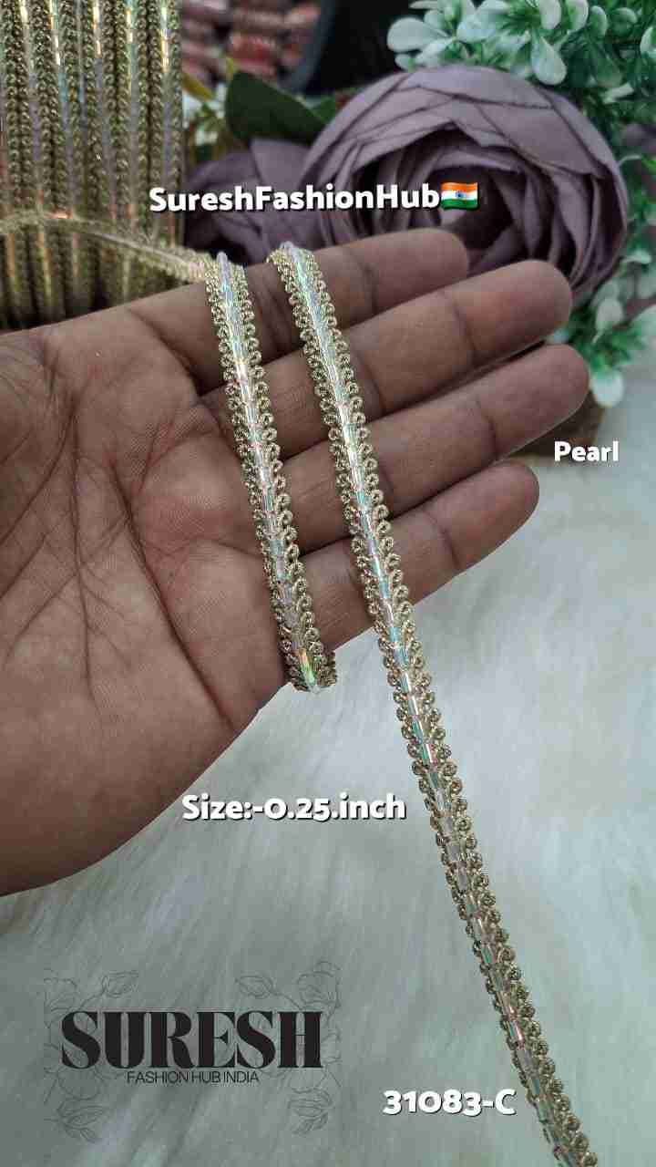 Pearl Sequin Jhalar Machine Dori Lace – Design 26043-C