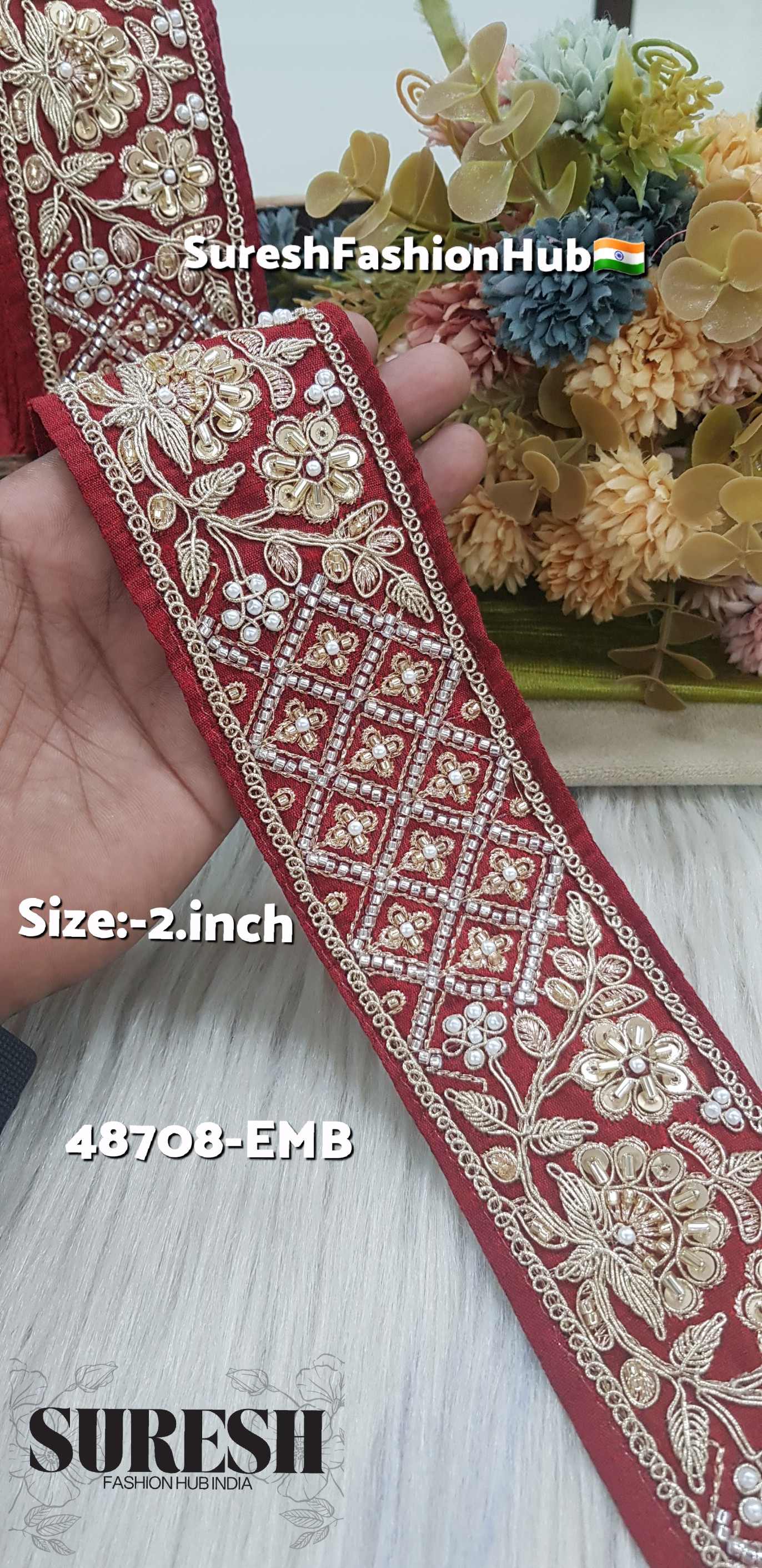 Maroon Floral Dori Embroidery Lace – 48708-Emb